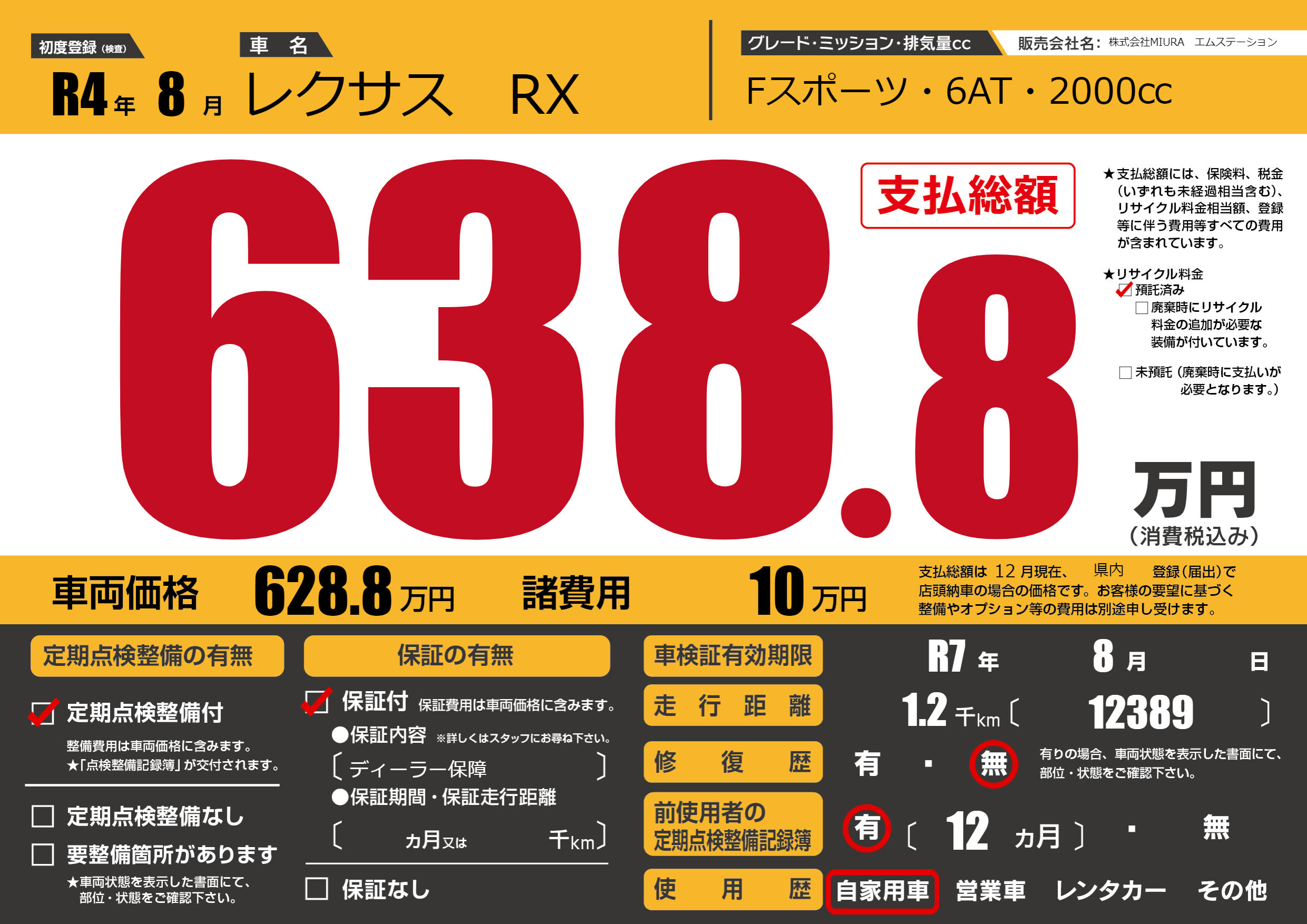 | 車検制限 | R7年 8月 - 日 | ||