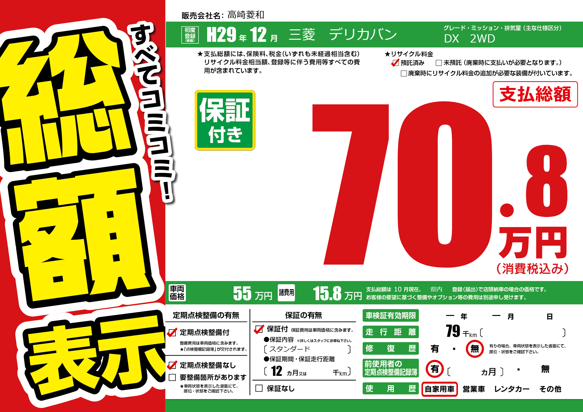 | 走行キロ | 7.9万km | 初年度登録 | H29年12月 |