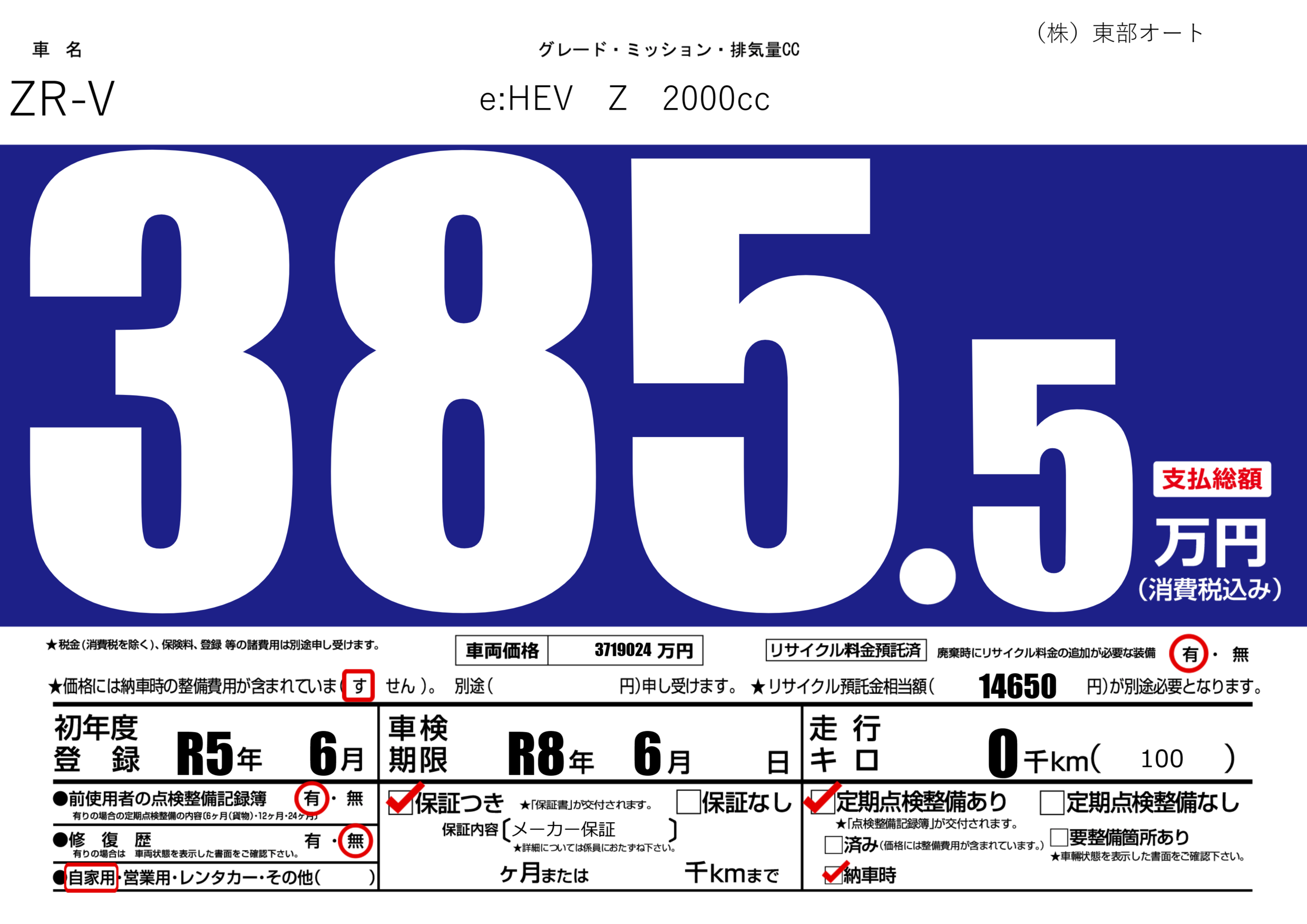 | 車検制限 | R8年 6月 - 日 | ||