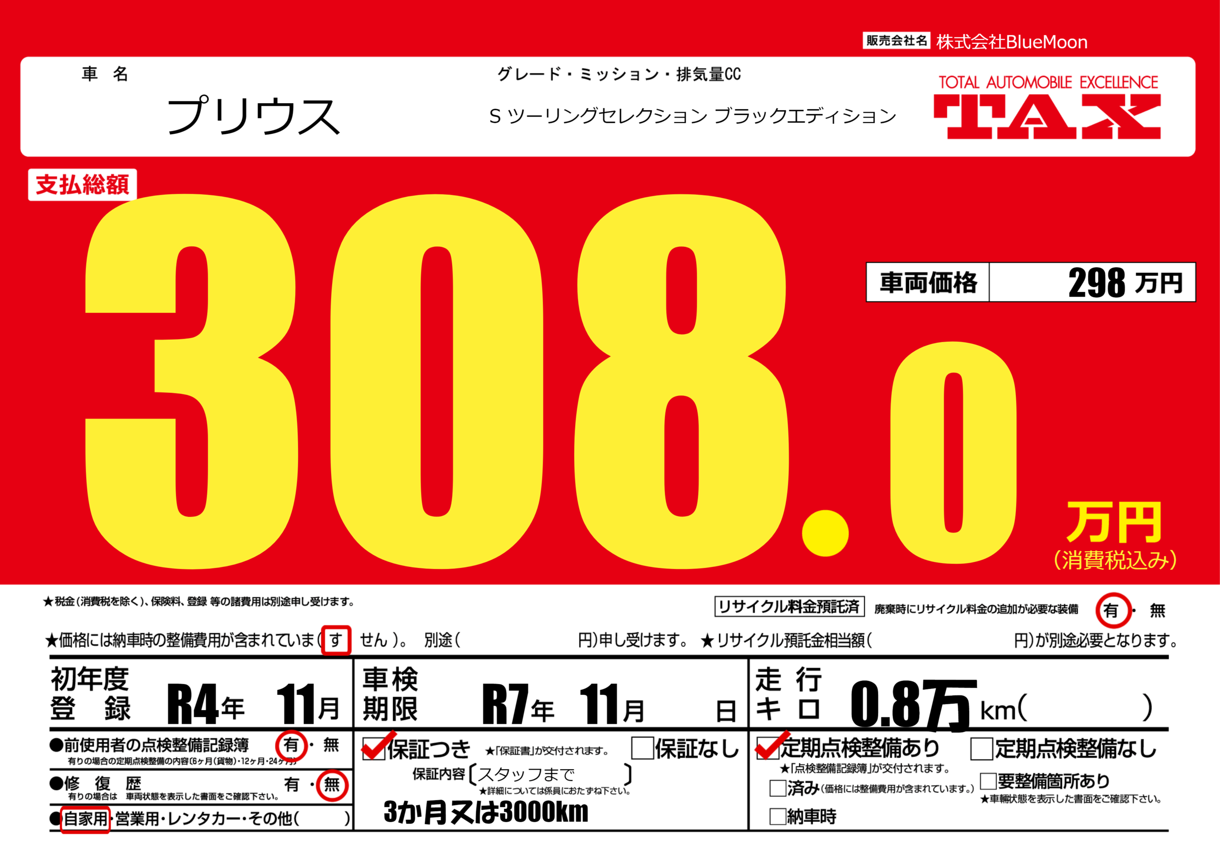 | 車名 | プリウス | グレード ミッション 排気量 |