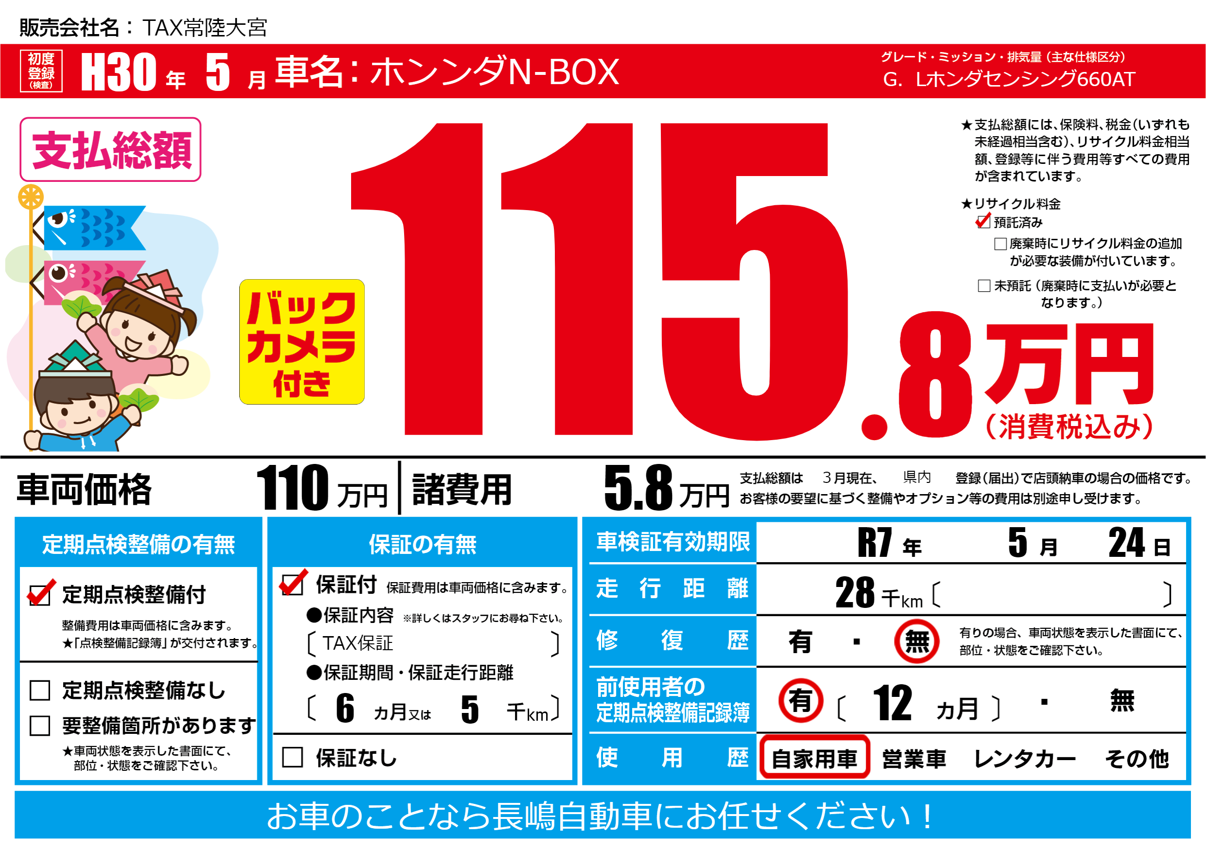 保証付き 保証内容(TAX保証) 6ヶ月または(5)千kmまで |