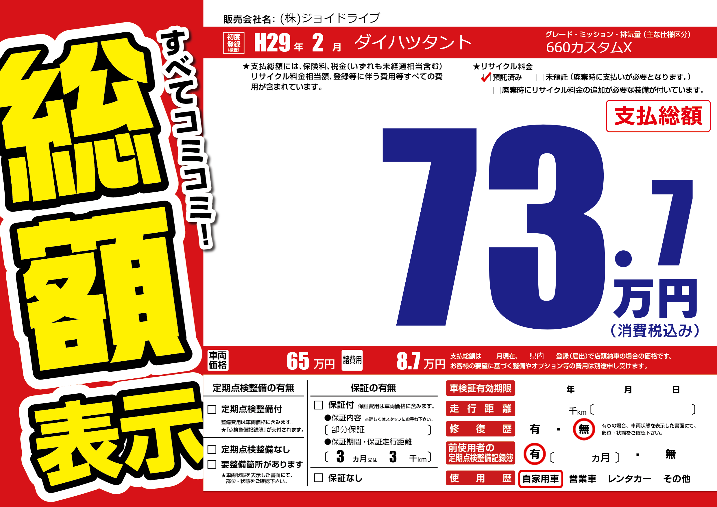 | 車検制限 | - 年 - 月 - 日 | ||