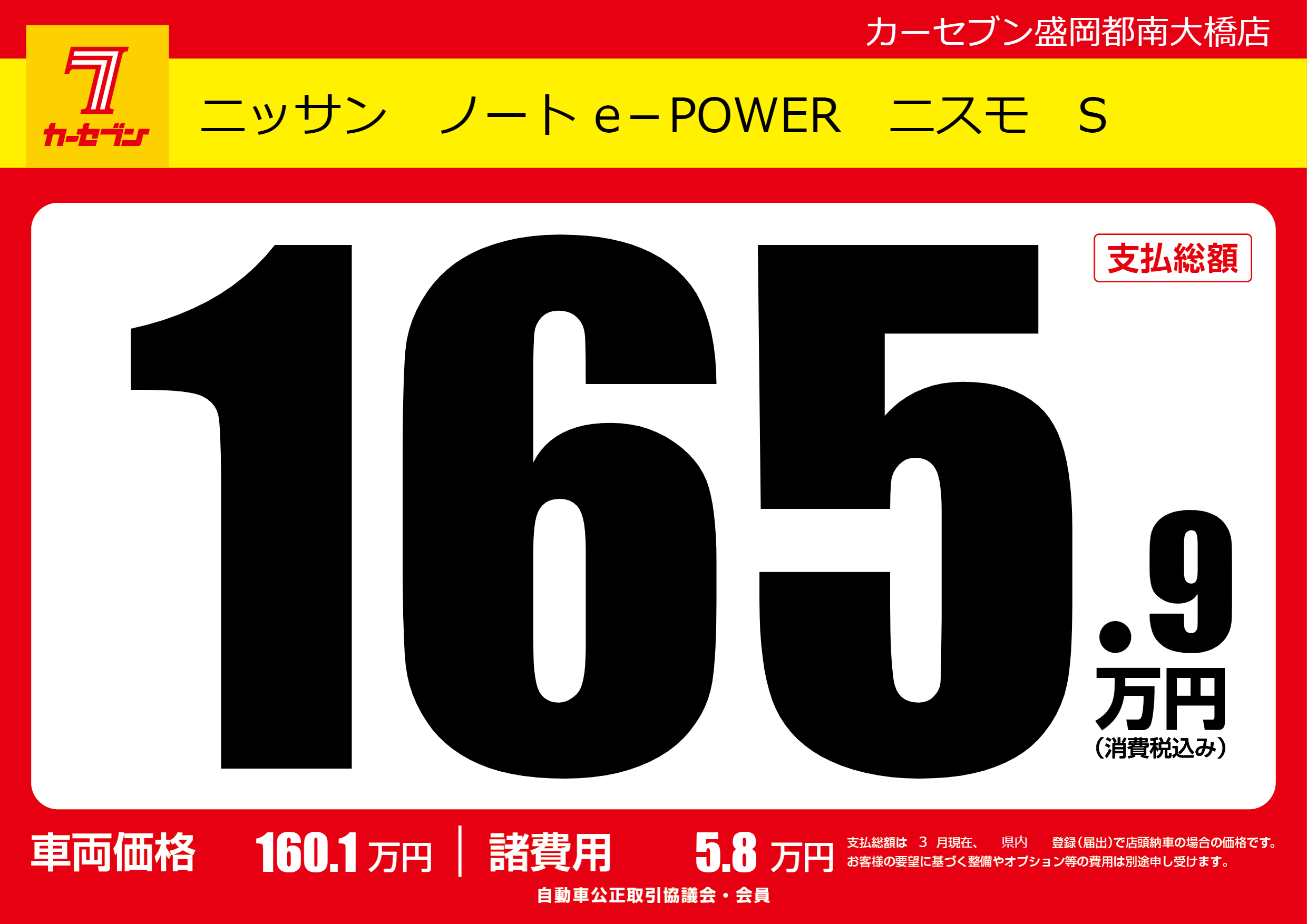 | 車名 | ニッサン ノート e-POWER ニスモ S | グレード ミッション 排気量 |