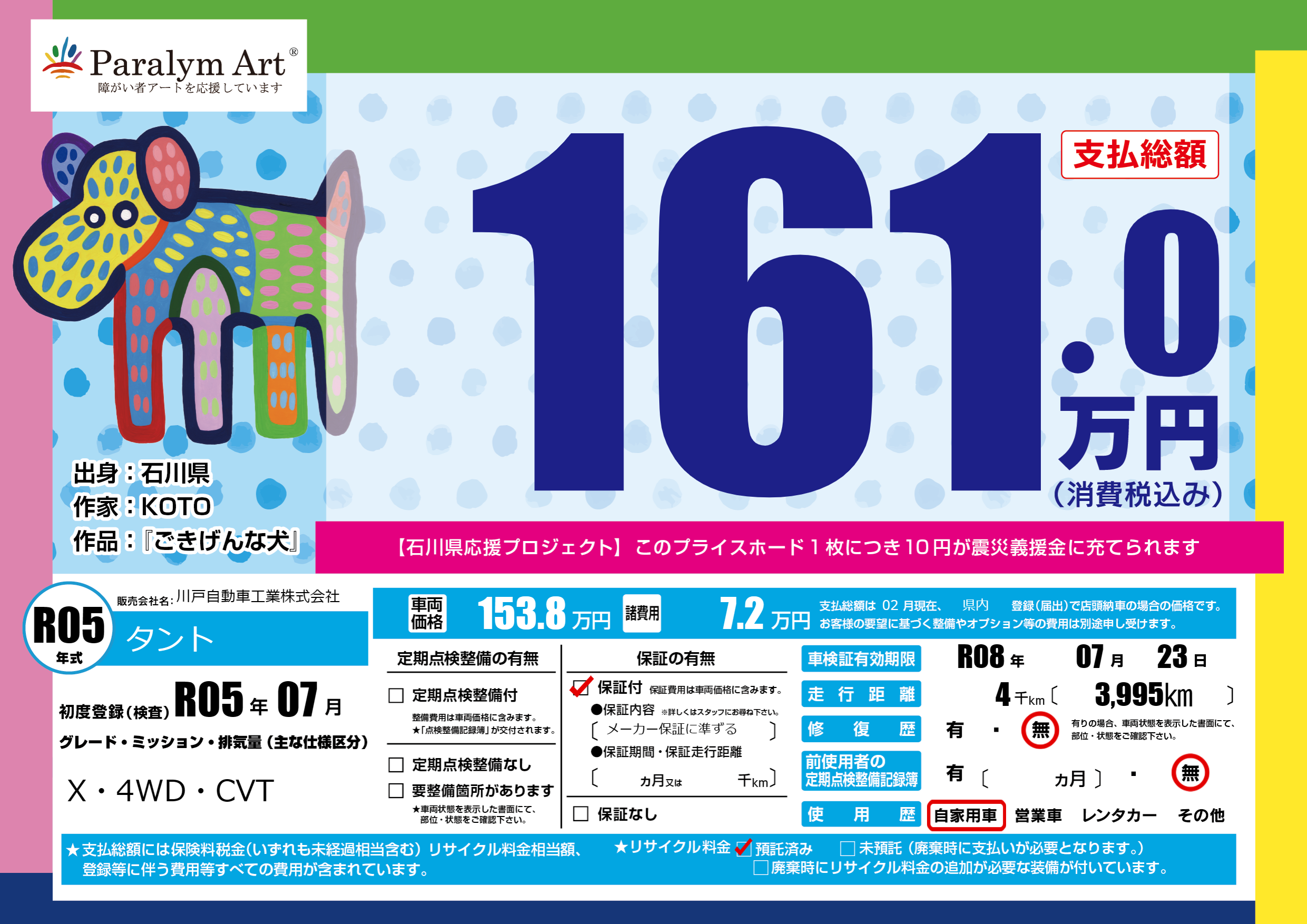 保証付き 保証内容(メーカー保証に準ずる) ヶ月または千km |