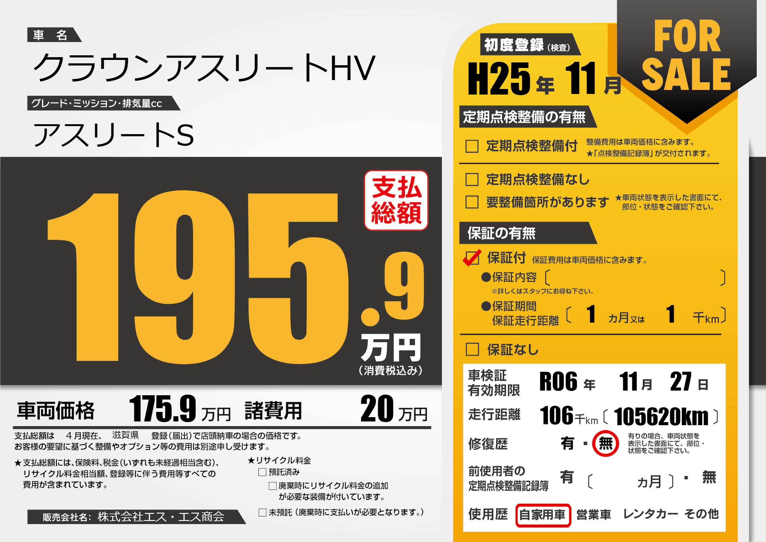 なし | 車検制限 | R06年11月27月 |