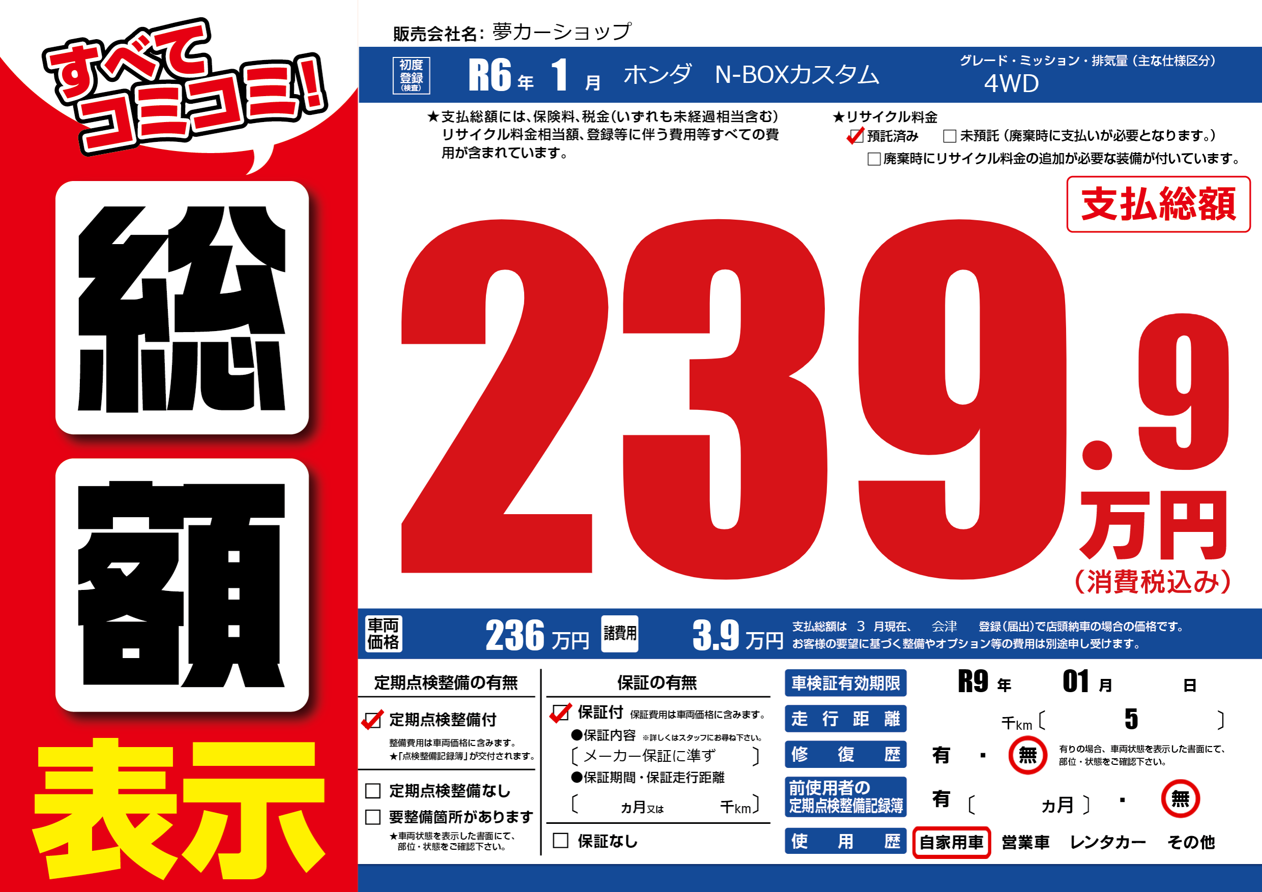 保証付き 保証内容(メーカー保証に準ず) ---ヶ月または()千kmまで |