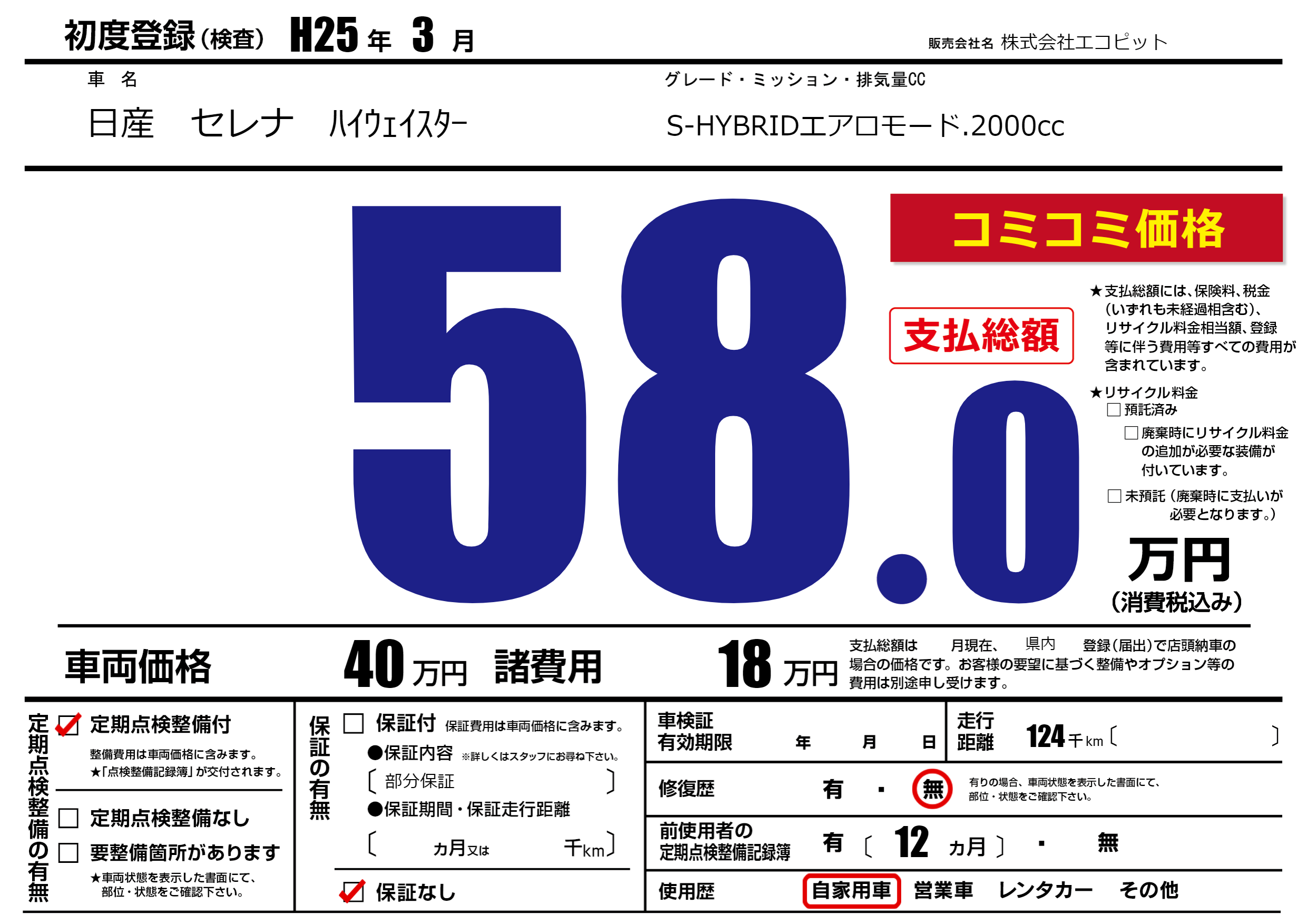 | 初年度登録 | H25年3月 | ||
