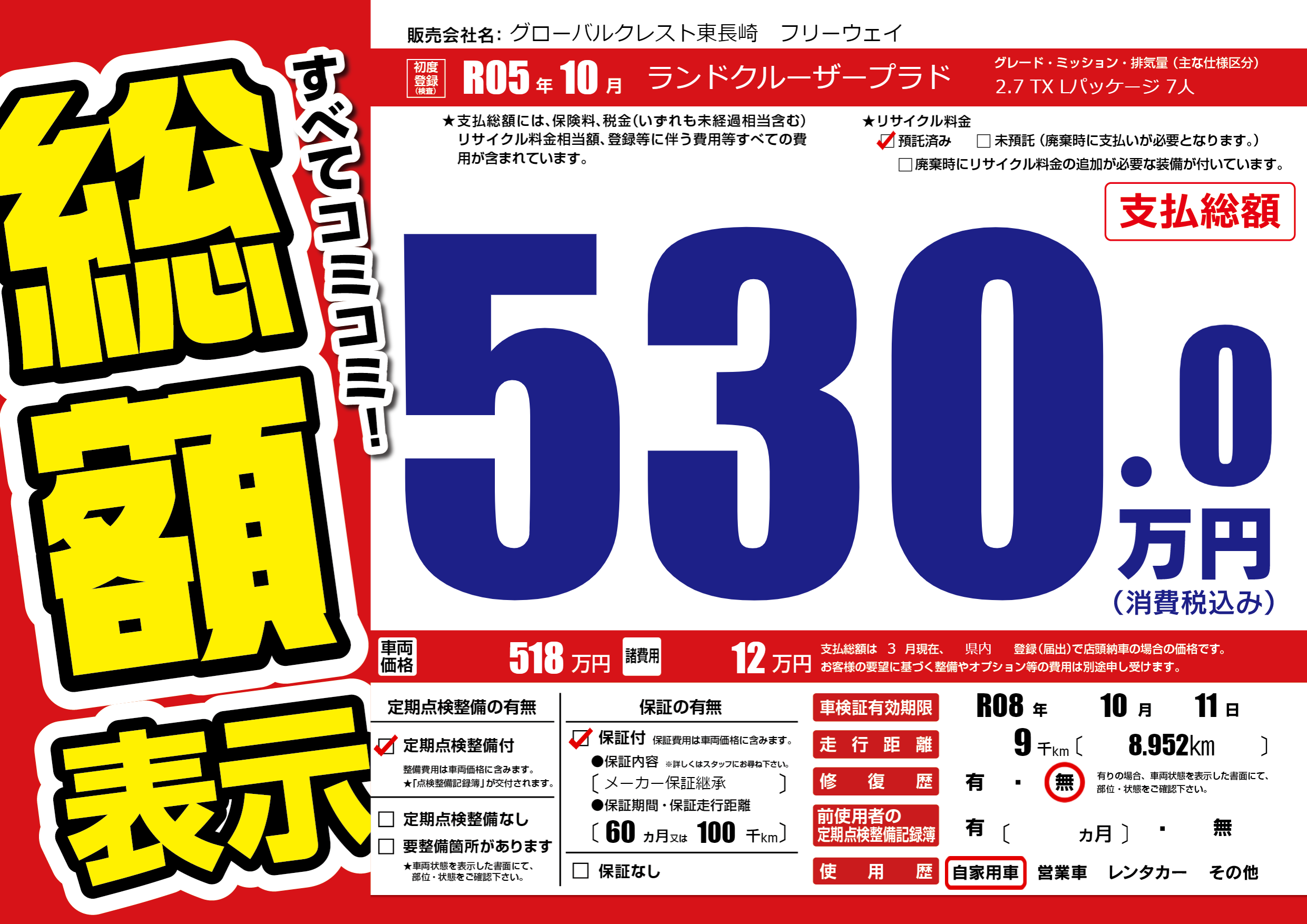 | 車名 | ランドクルーザープラド | グレード ミッション 排気量 |