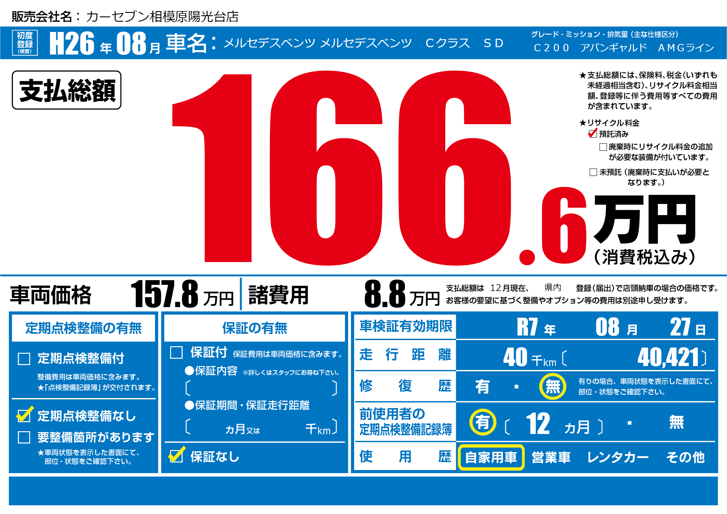 | 車検制限 | R7年 08月 27日 | ||