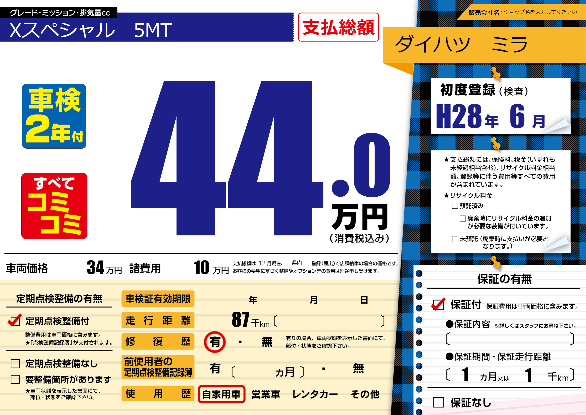 | 定期点検整備 | 定期点検整備あり | ||