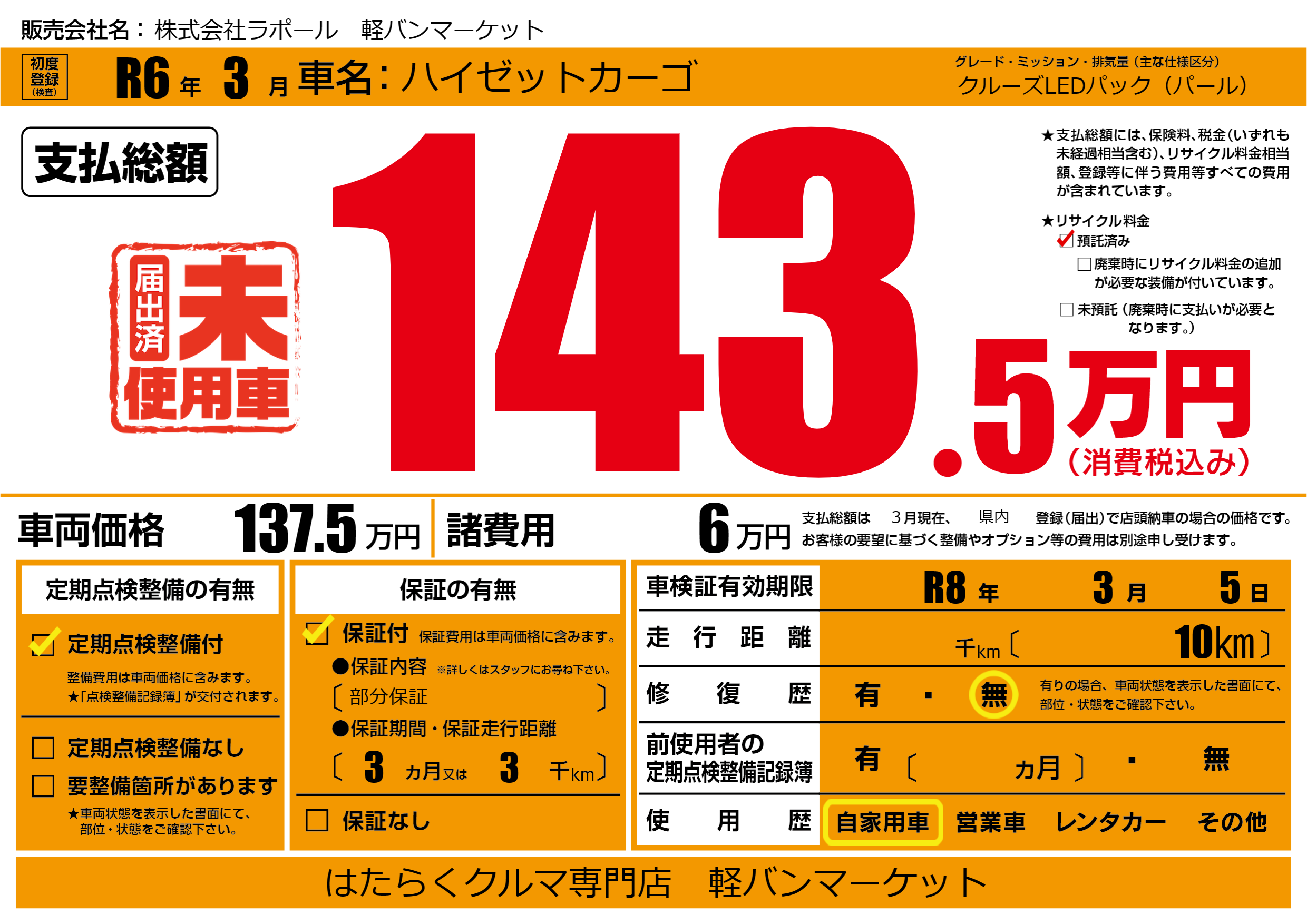 | 車検制限 | R8年 3月 5日 | ||