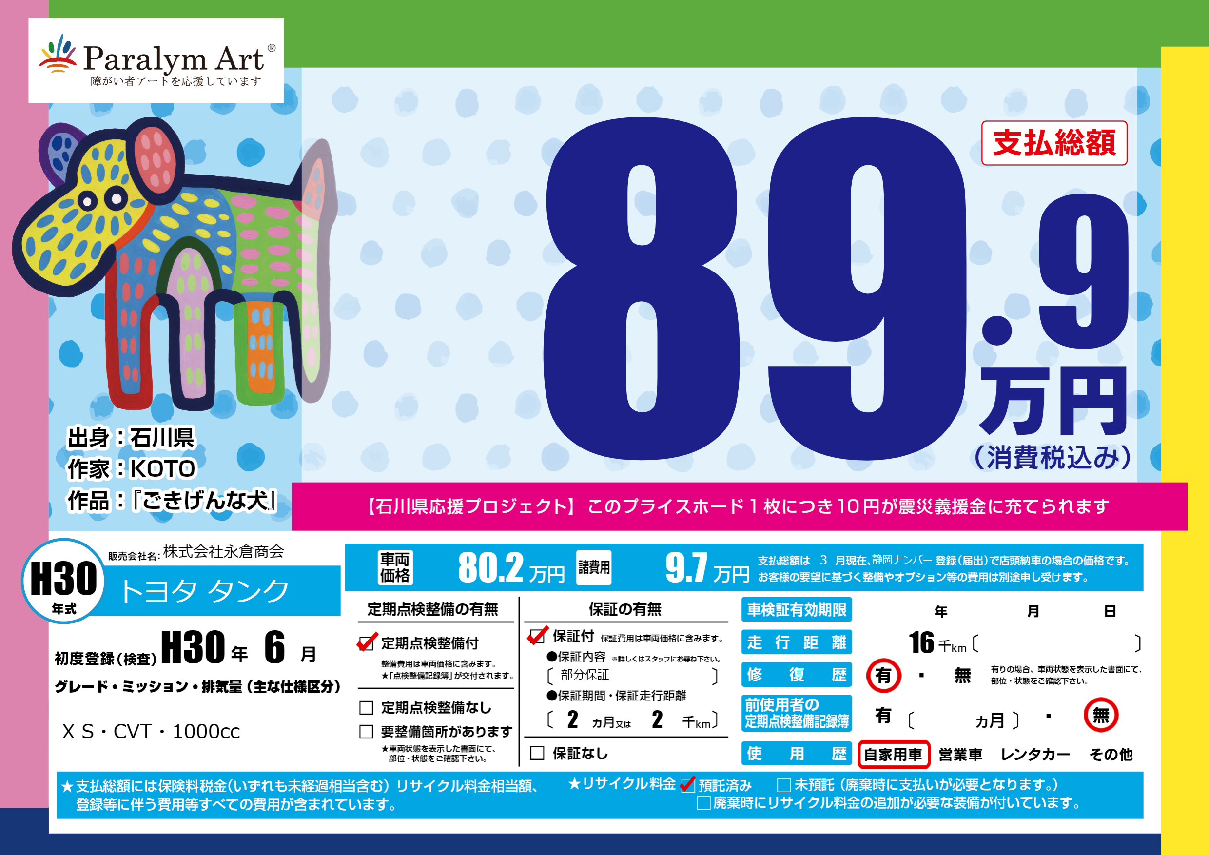 | 車名 | トヨタ タンク | グレード ミッション 排気量 |