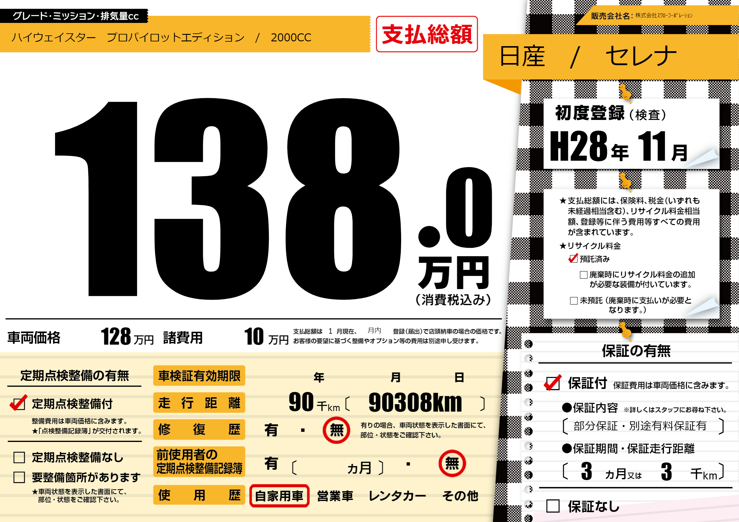 保証付き 保証内容(部分保証・別途有料保証有) 3ヶ月または(3)千kmまで |