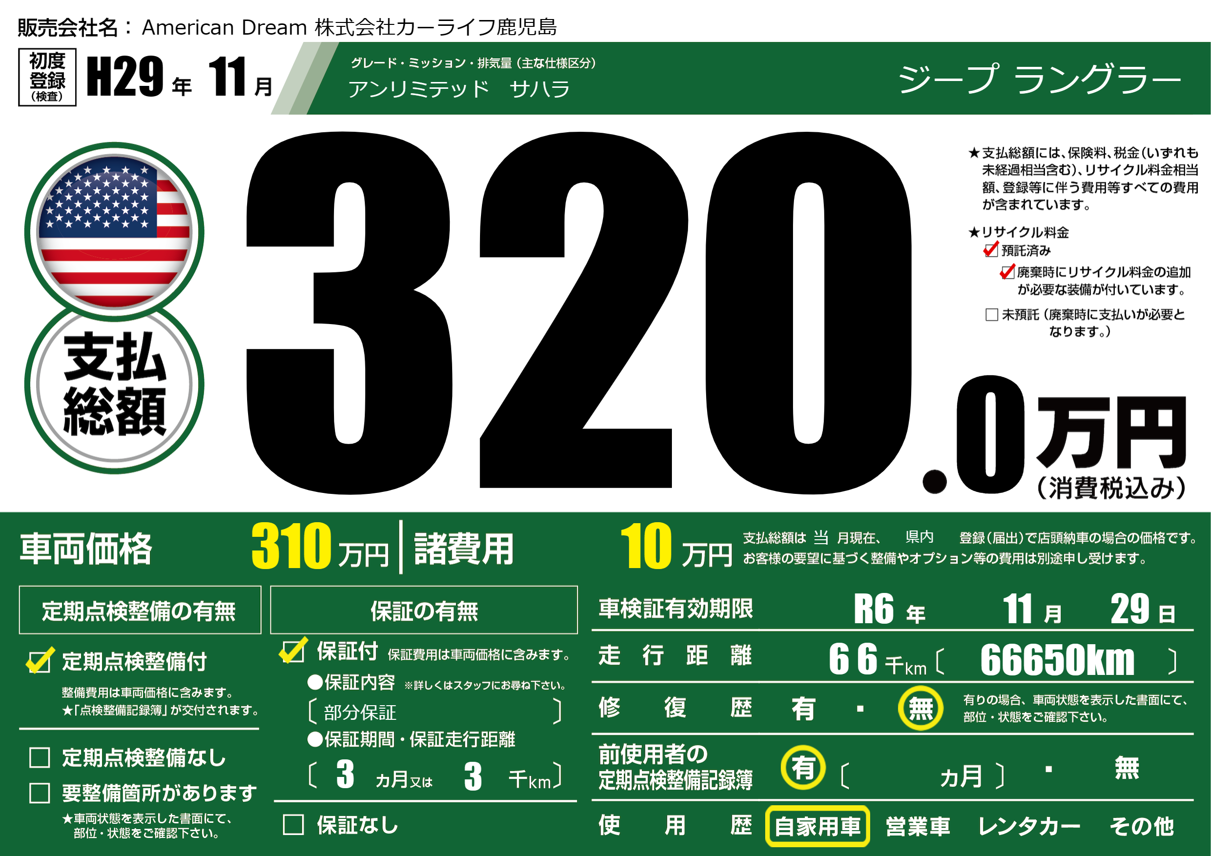 なし | 車検制限 | R6年11月29月 |