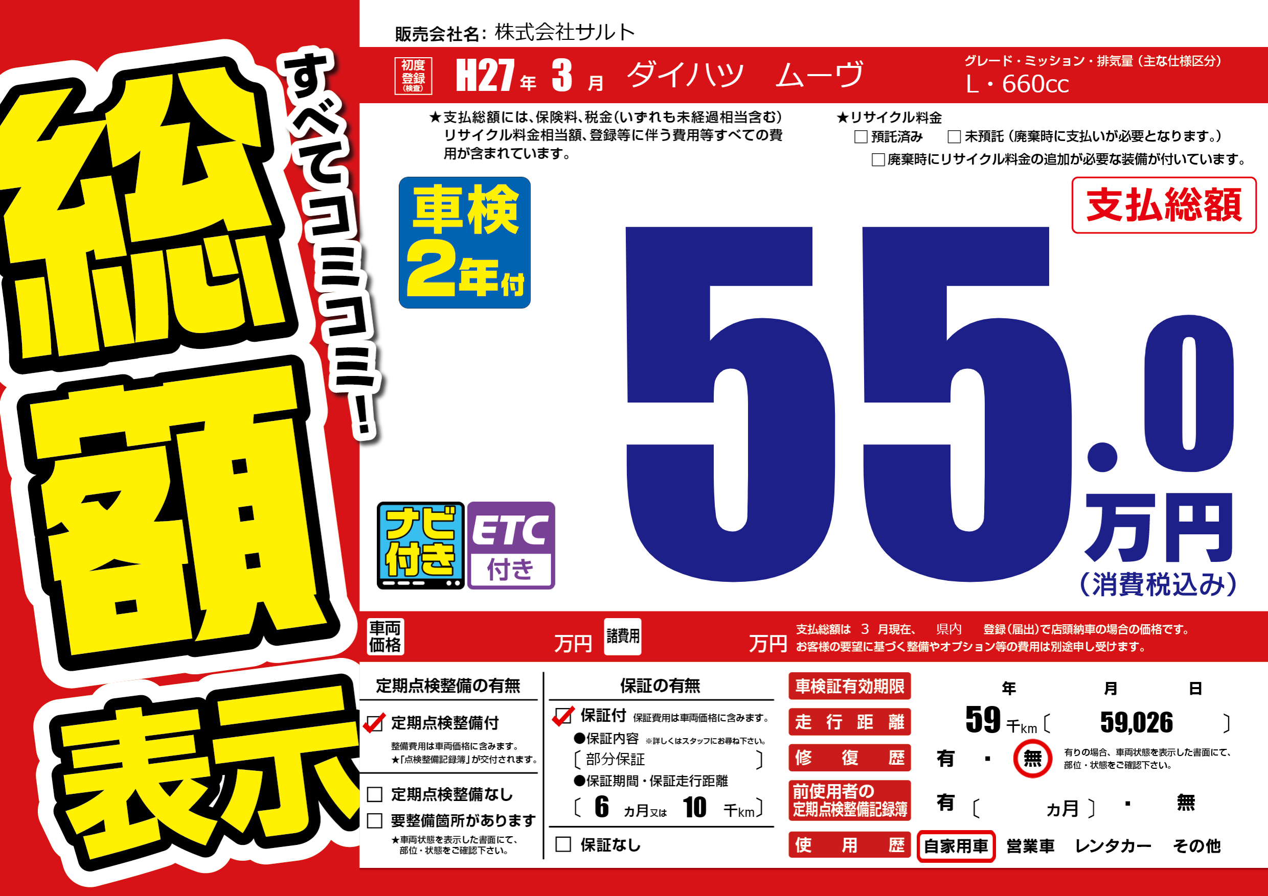 | 初年度登録 | H27年3月 | ||