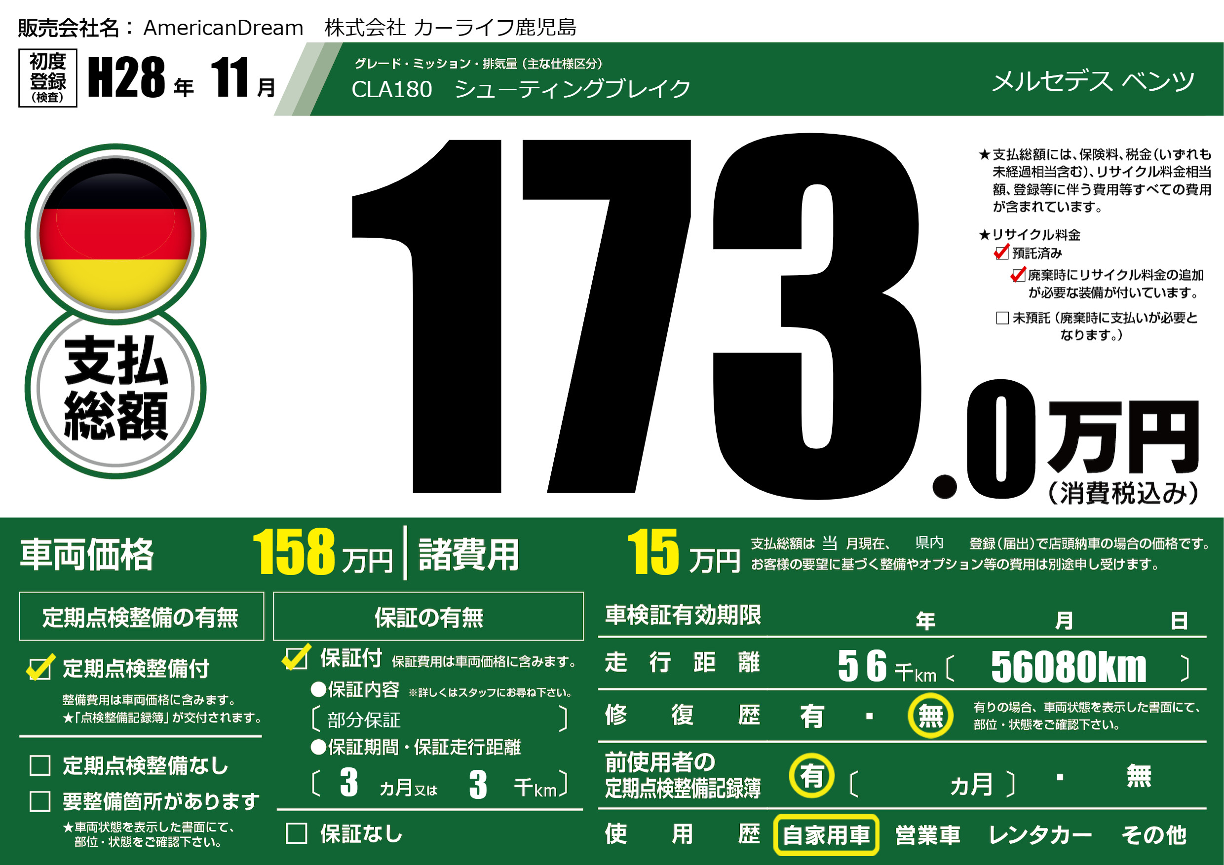 | 車検制限 | - 年 - 月 - 日 | ||