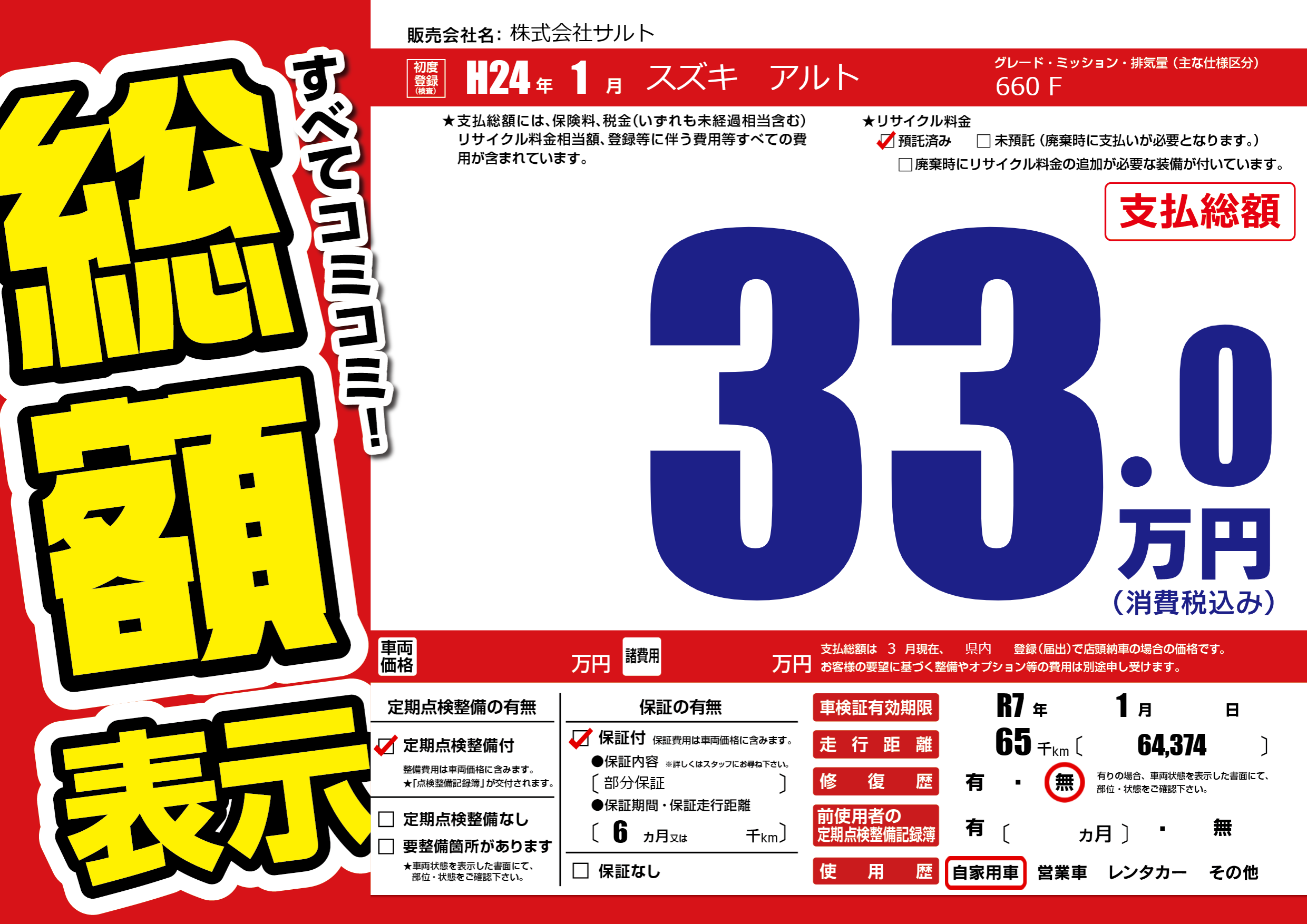 | 車検制限 | R7年 1月 - 日 | ||