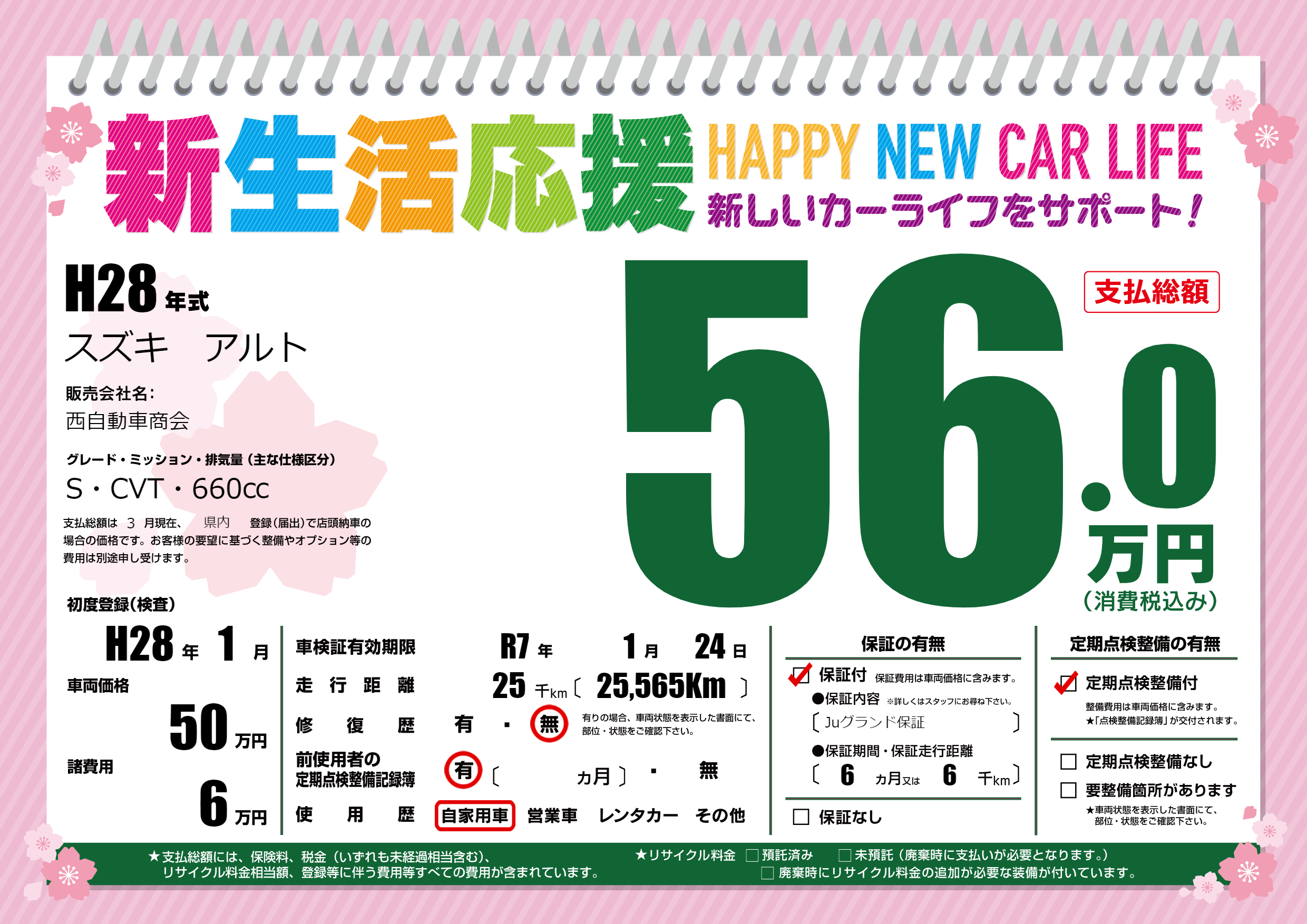 | 車名 | スズキ アルト | グレード ミッション 排気量 |