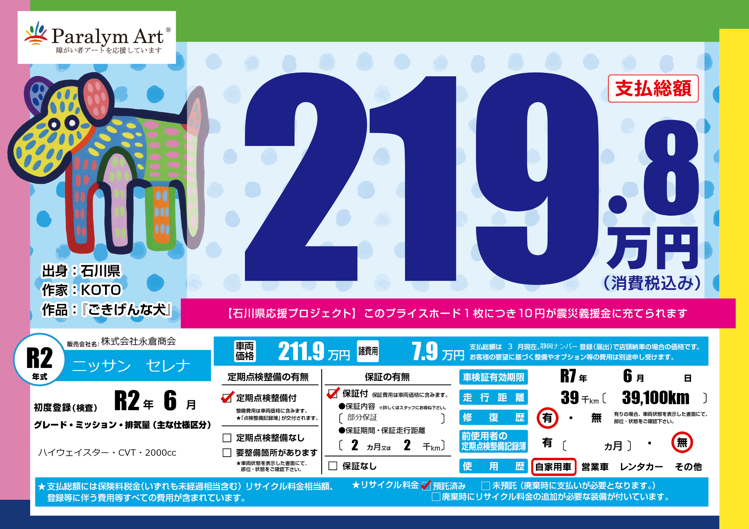 | 走行キロ | 3.9万km | 初年度登録 | R2年6月 |