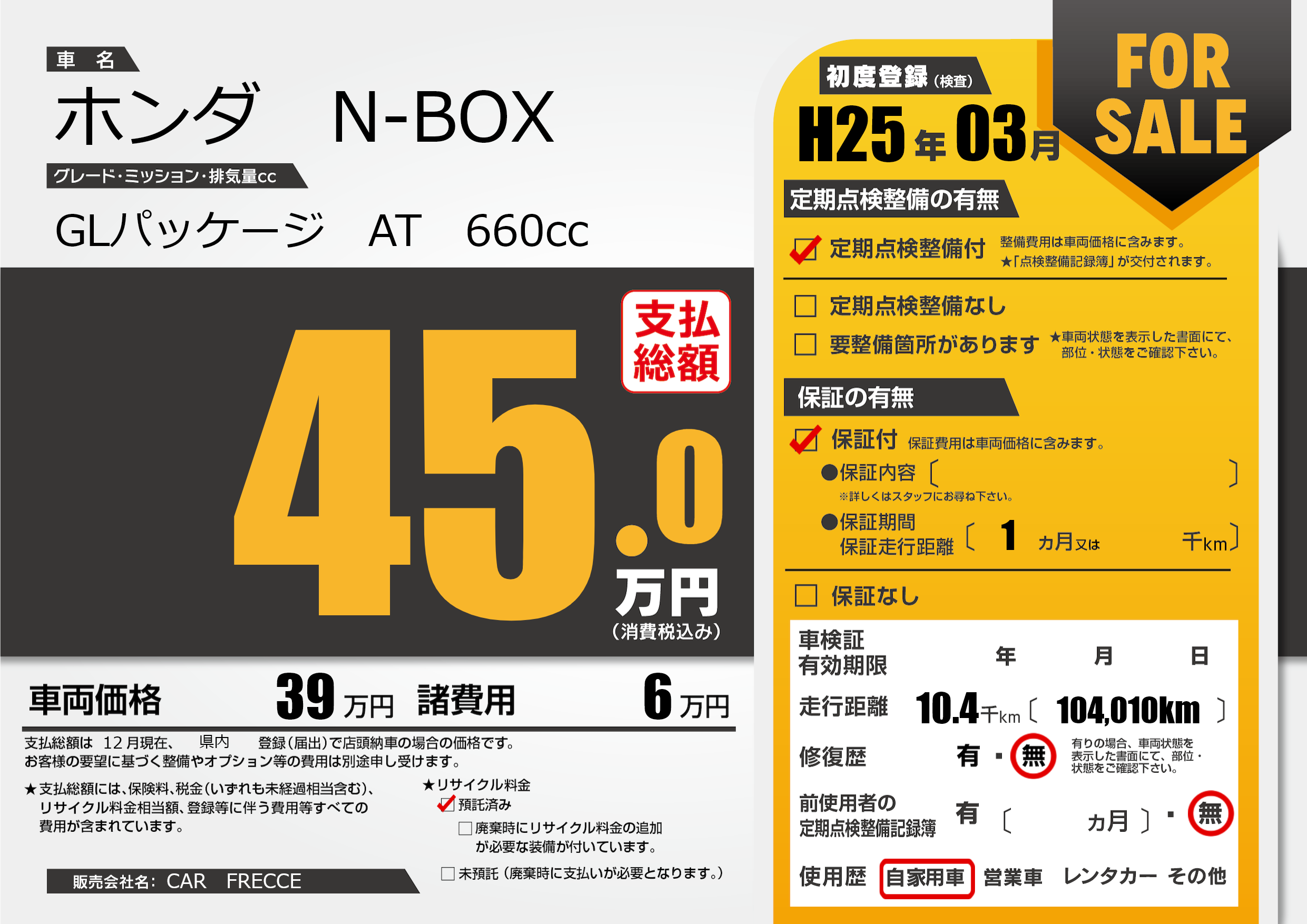 | 定期点検整備 | 定期点検整備あり | ||
