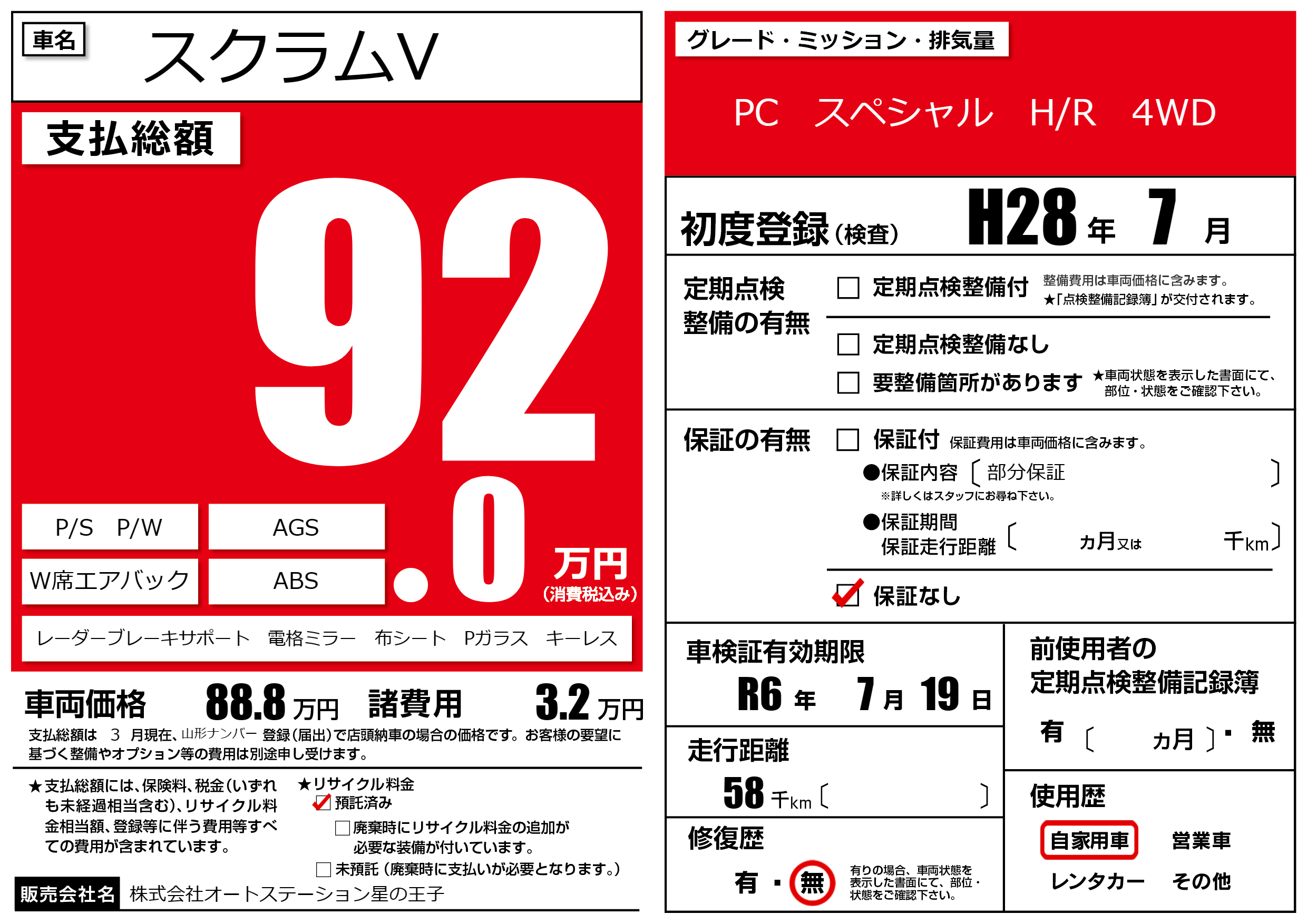 なし | 車検制限 | R6年7月19月 |