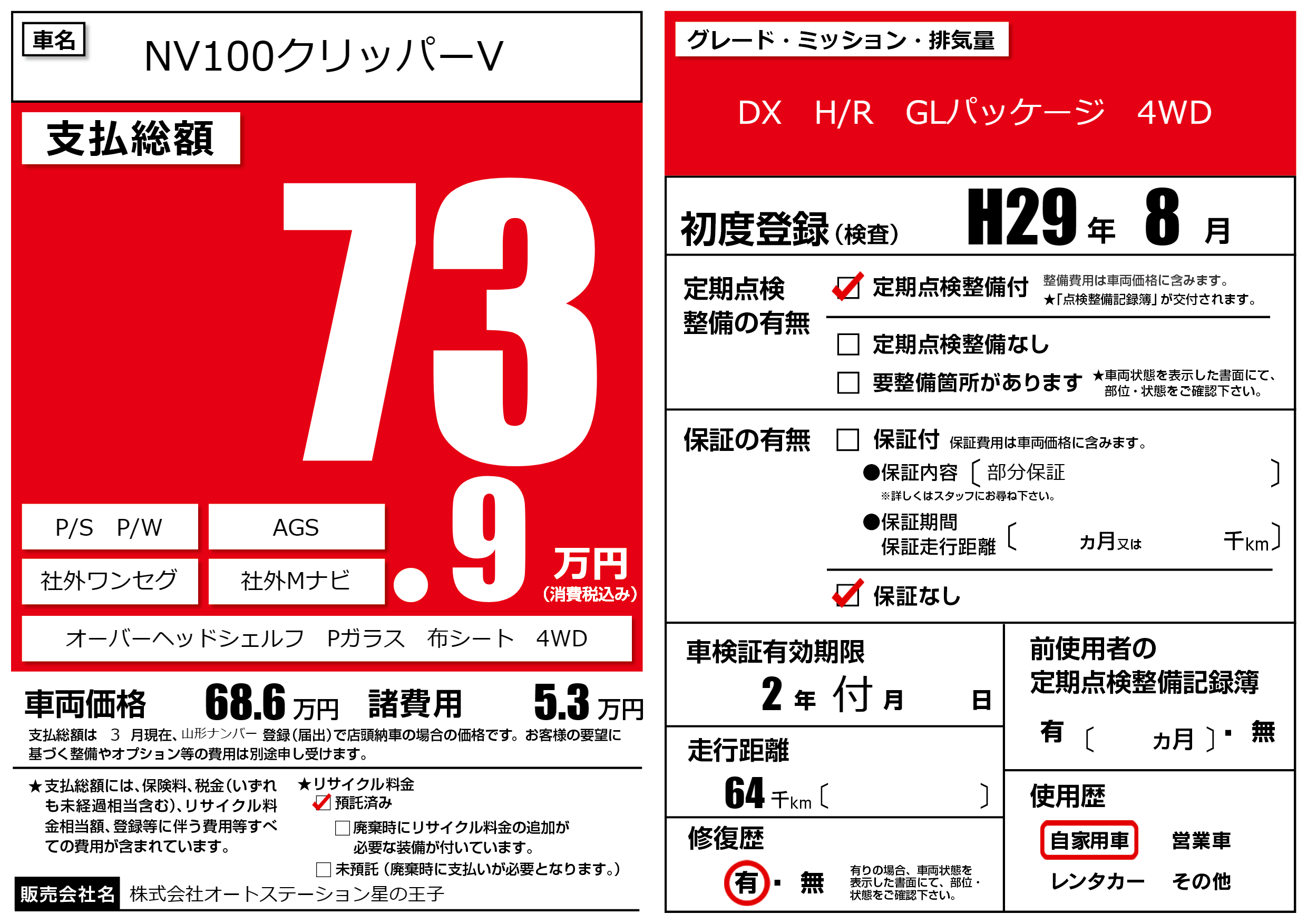 | 定期点検整備 | 定期点検整備あり | ||