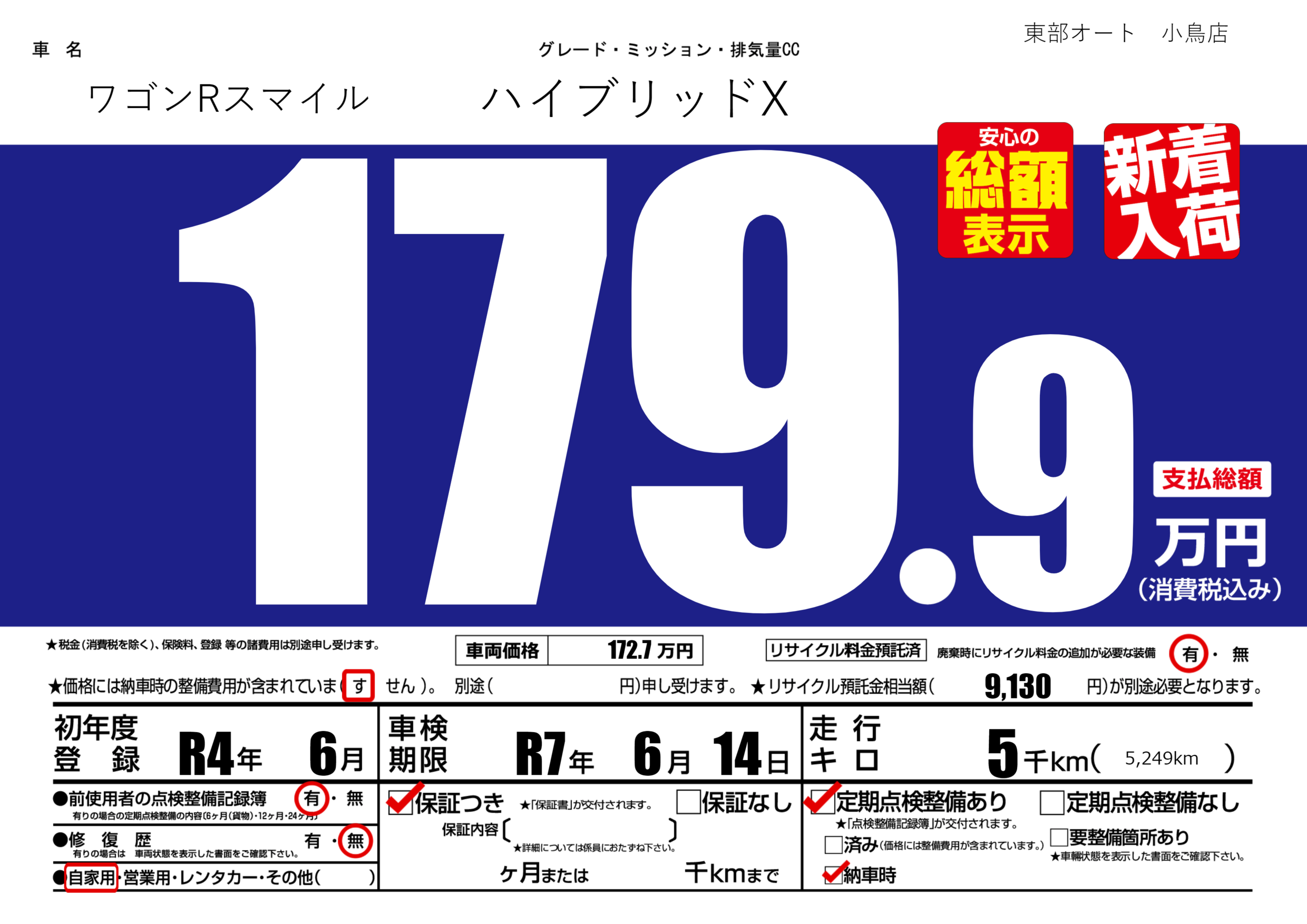 | 車名 | ワゴンRスマイル | グレード ミッション 排気量 |