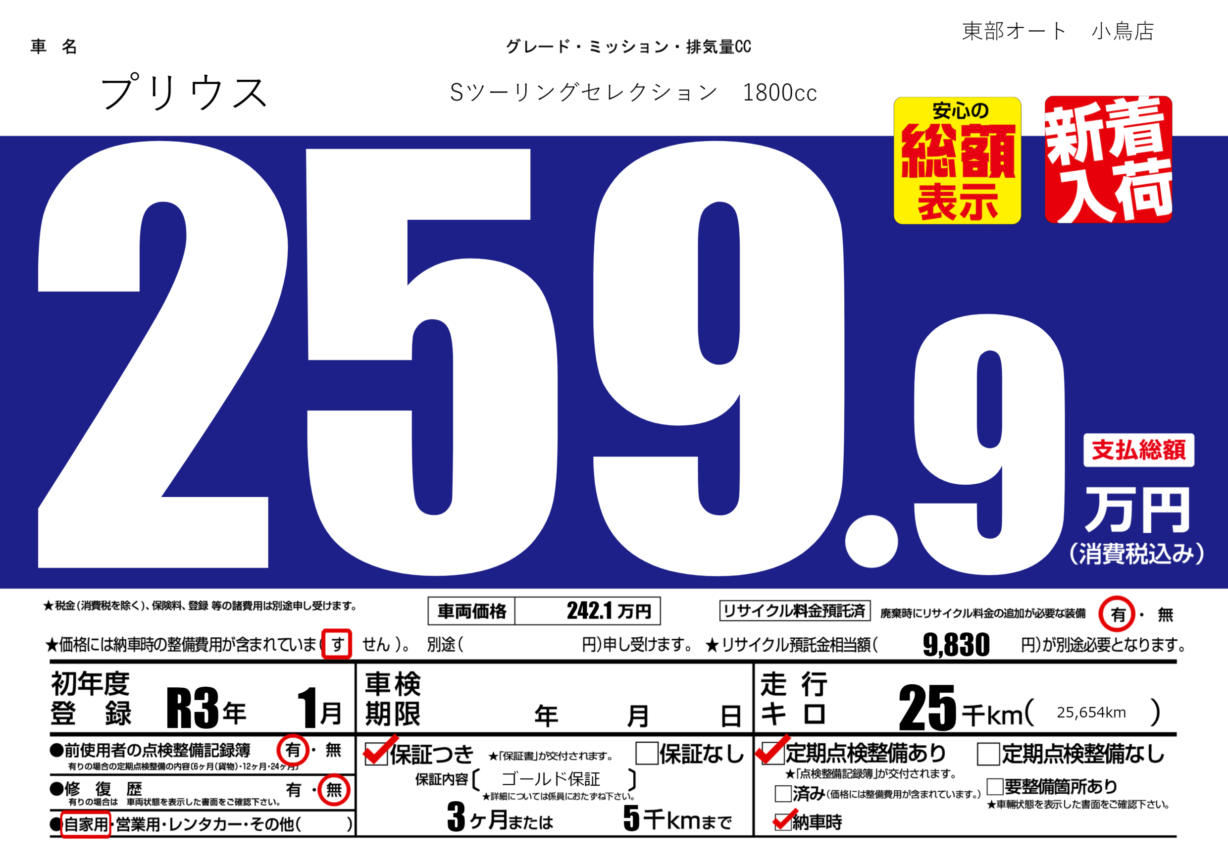 | 車名 | プリウス | グレード ミッション 排気量 |