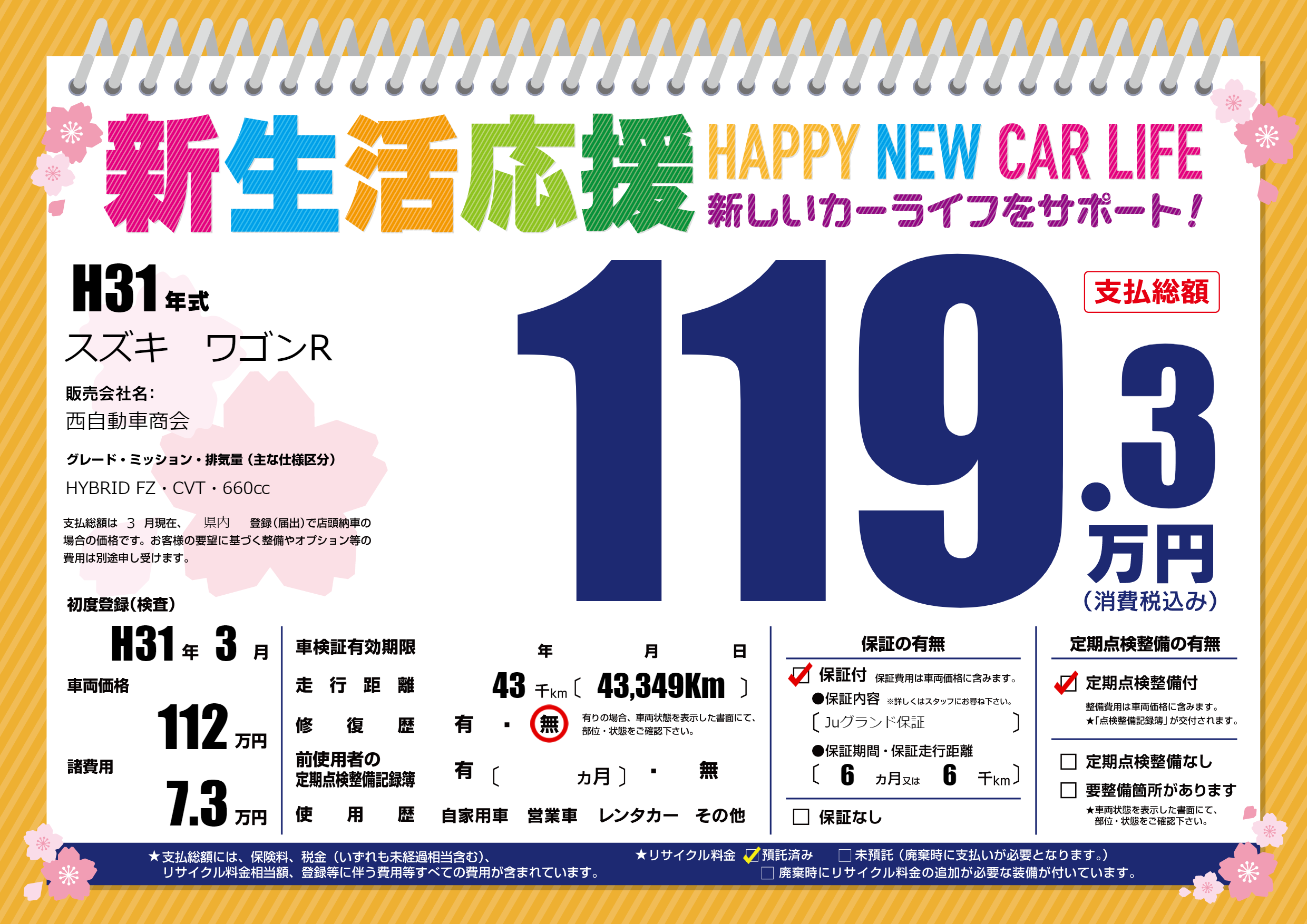 | 車名 | スズキ ワゴンR | グレード ミッション 排気量 |