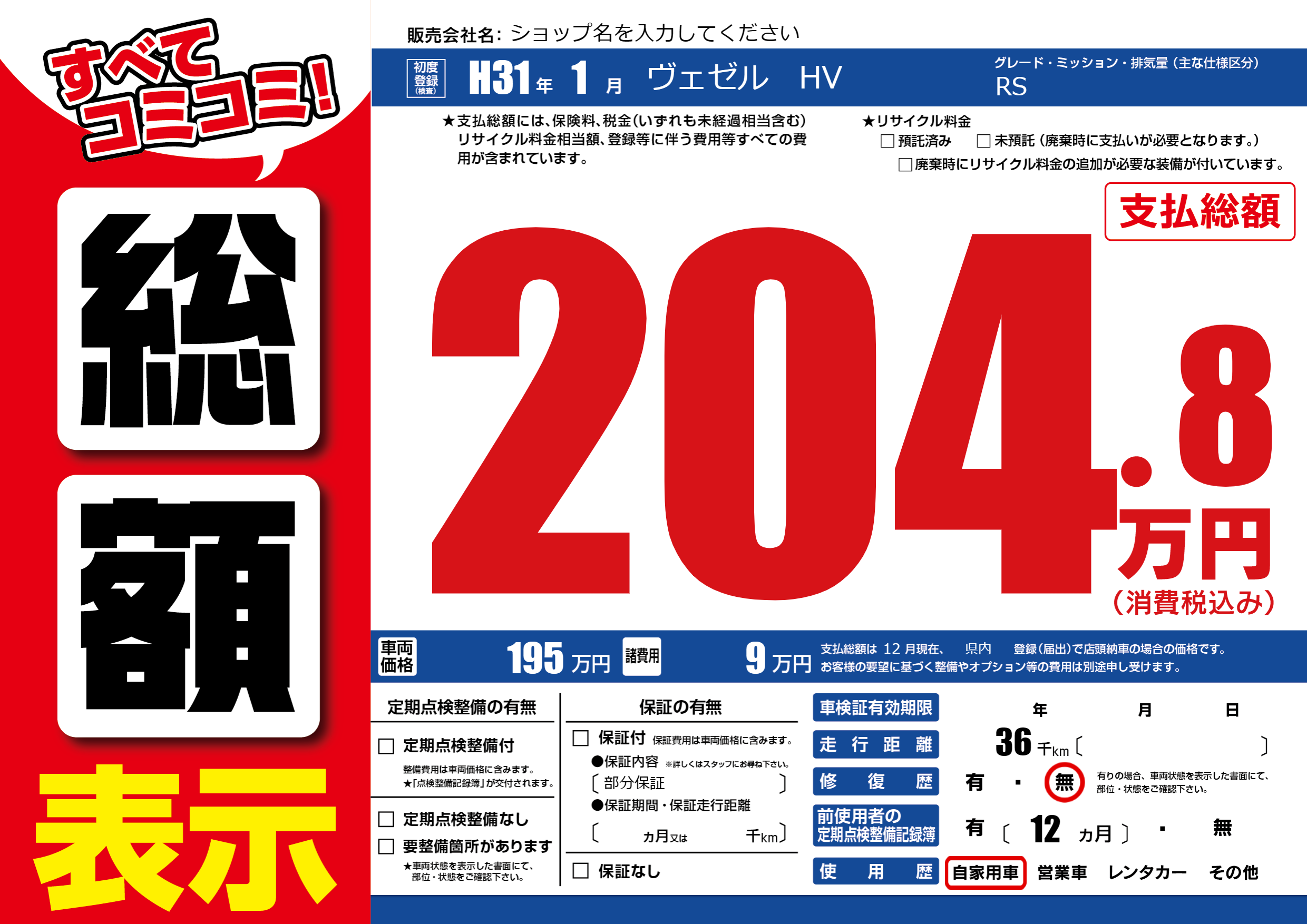 | 車検制限 | - 年 - 月 - 日 | ||