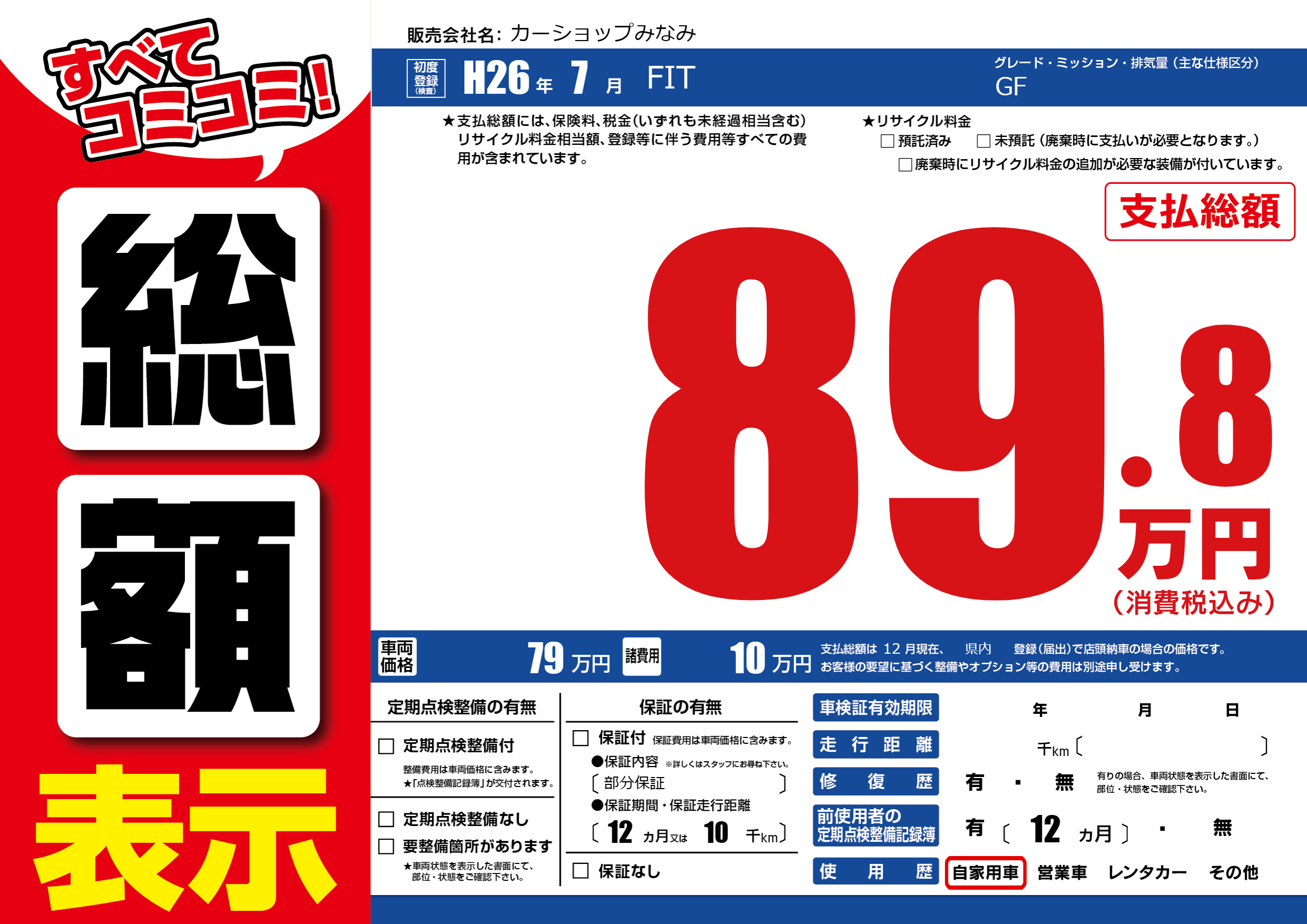 | 納車時の 整備費用 |