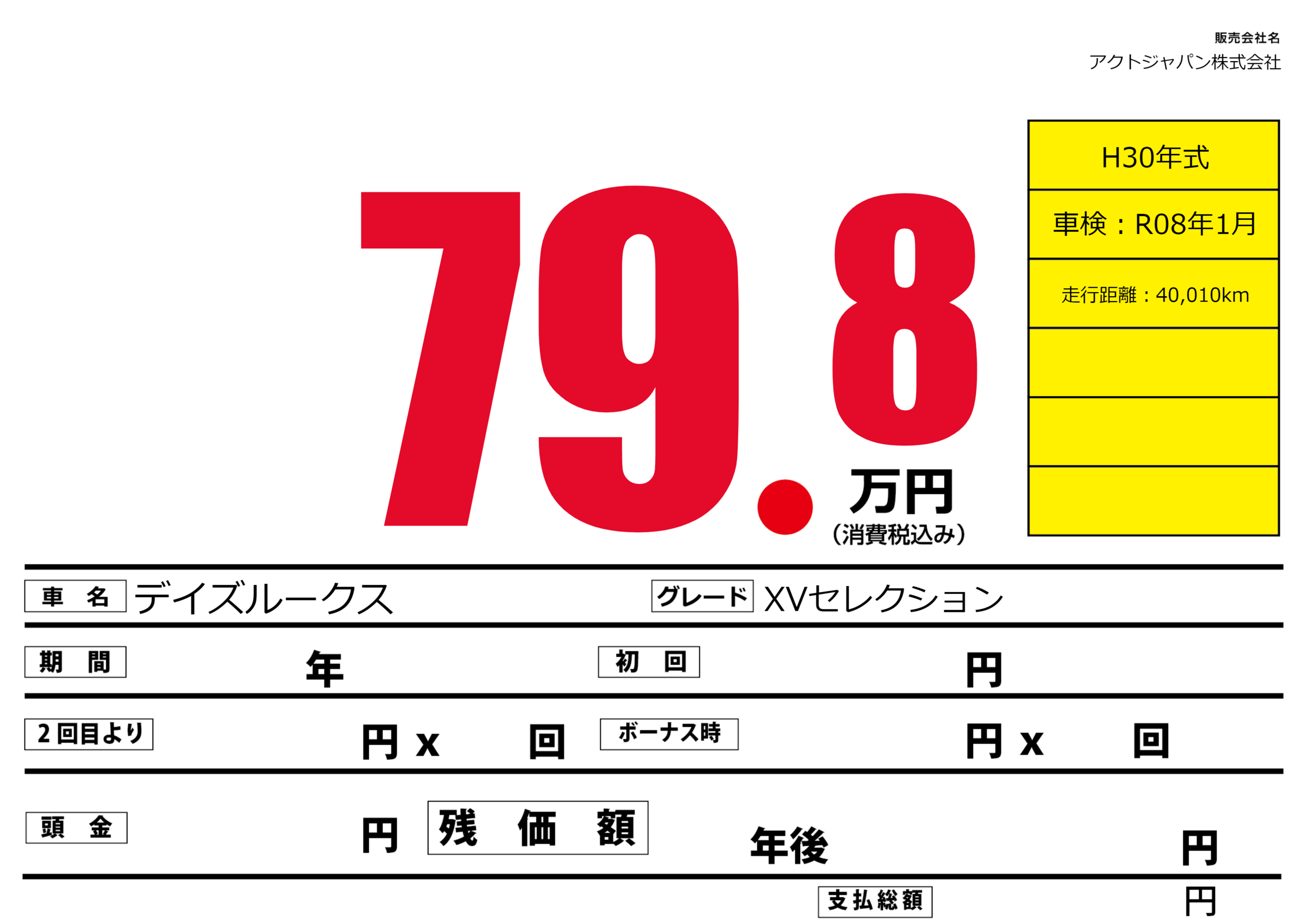 | 車検制限 | - 年 - 月 - 日 | ||