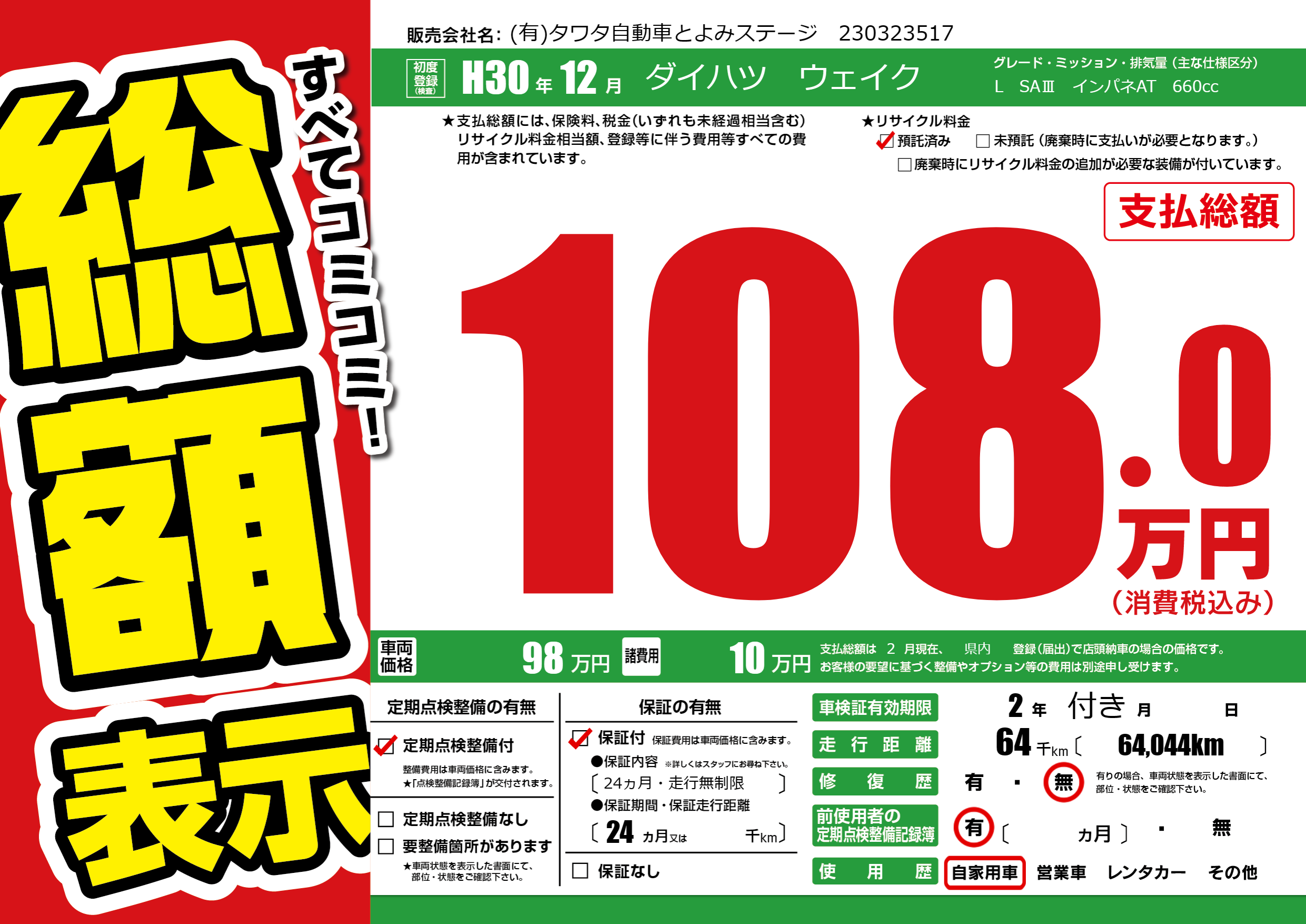 | 定期点検整備 | 定期点検整備あり | ||