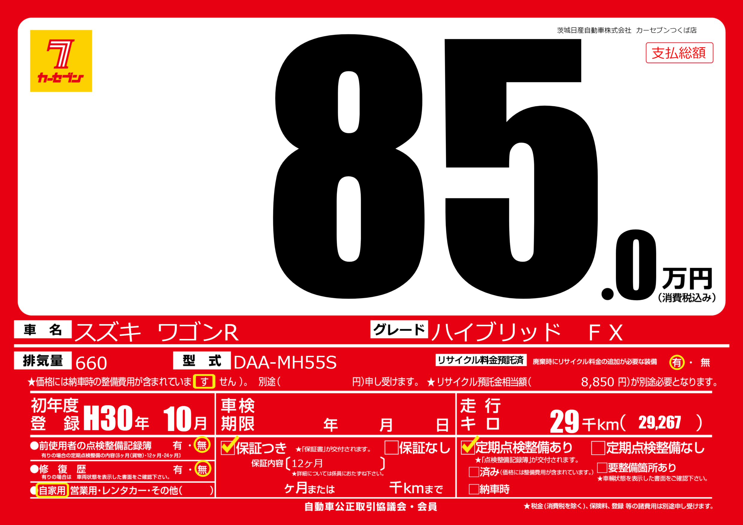 保証付き 保証内容(12ヶ月) ---ヶ月または()千kmまで |
