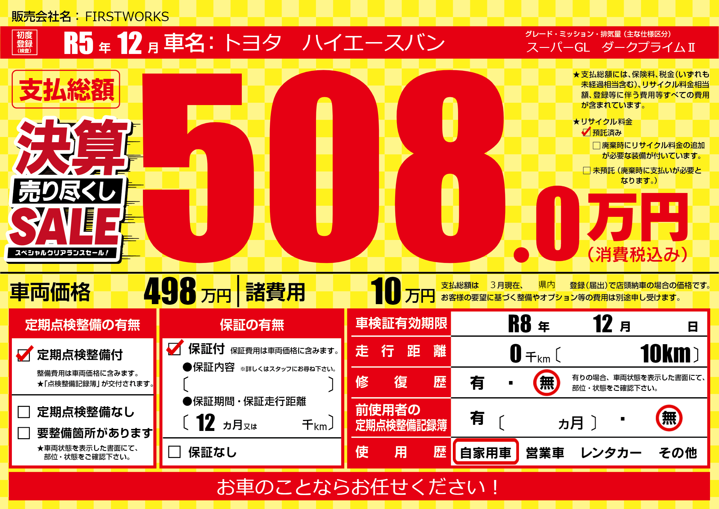 | 走行キロ | - | 初年度登録 | R5年12月 |