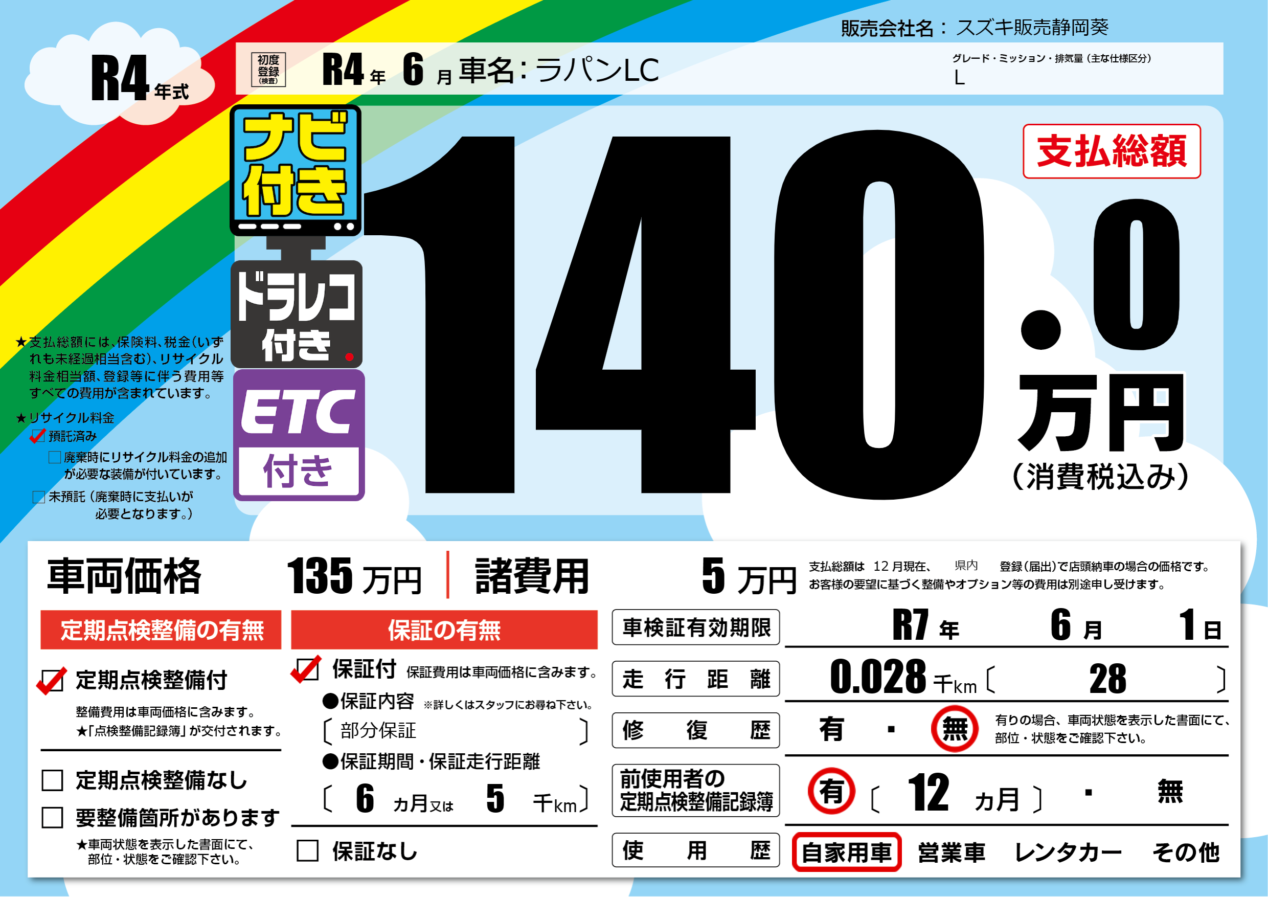 | 車名 | ラパンLC | グレード ミッション 排気量 |