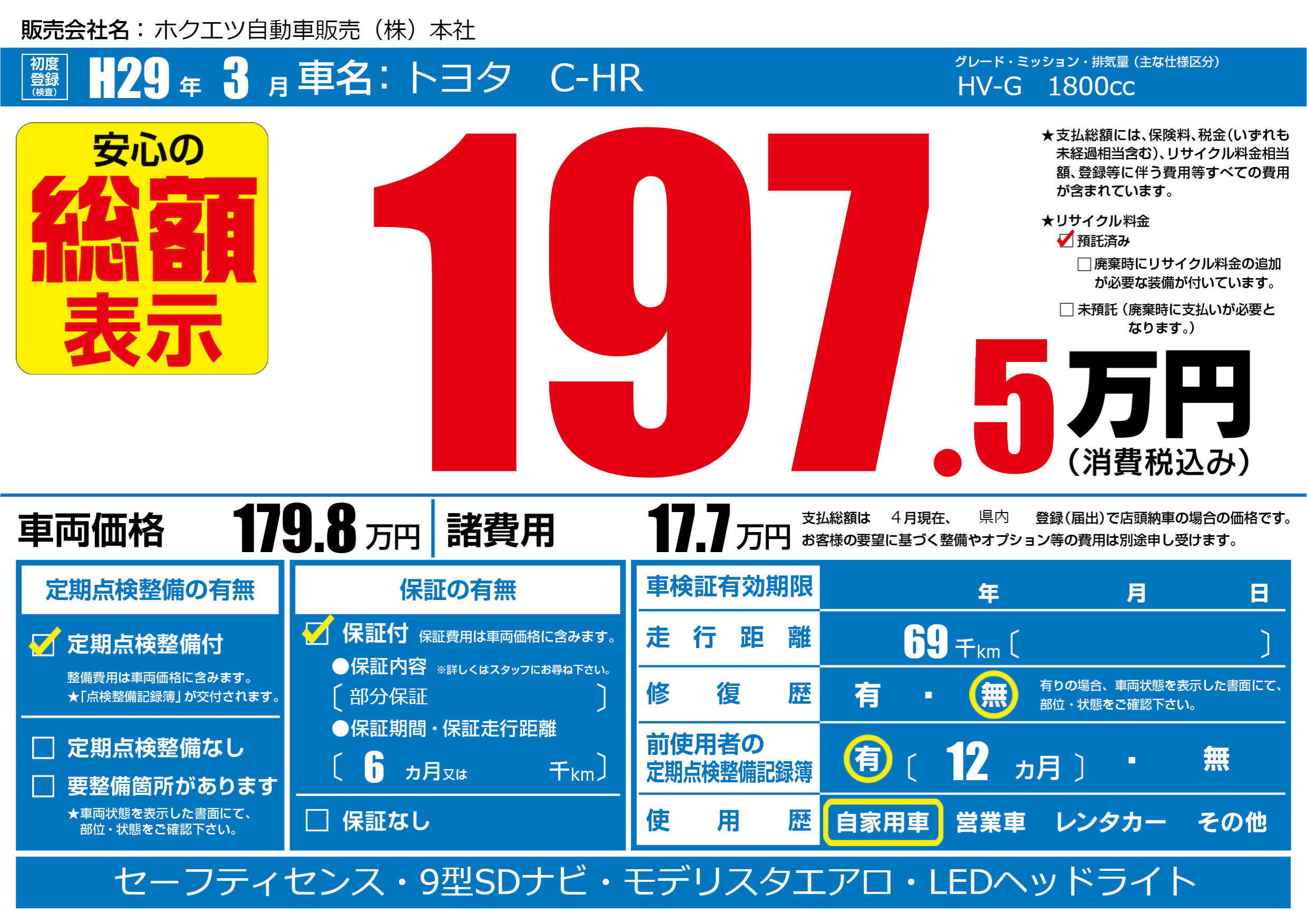 | 定期点検整備 | 定期点検整備あり | ||