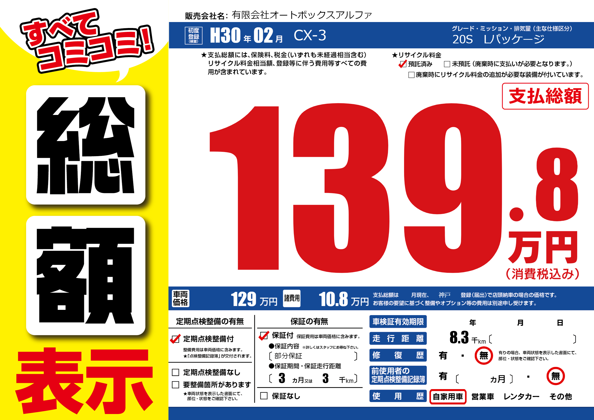 | 車名 | CX-3 | グレード ミッション 排気量 |