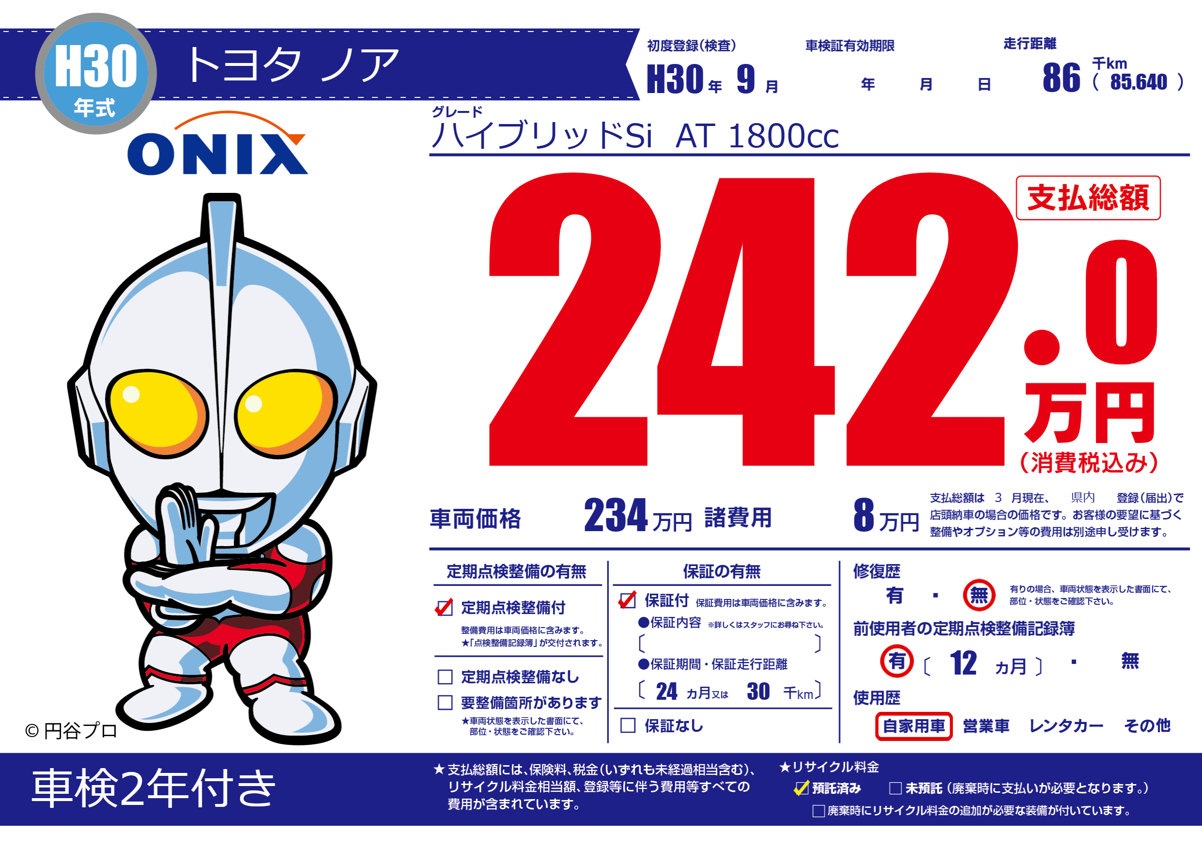 | 車名 | トヨタ ノア | グレード ミッション 排気量 |