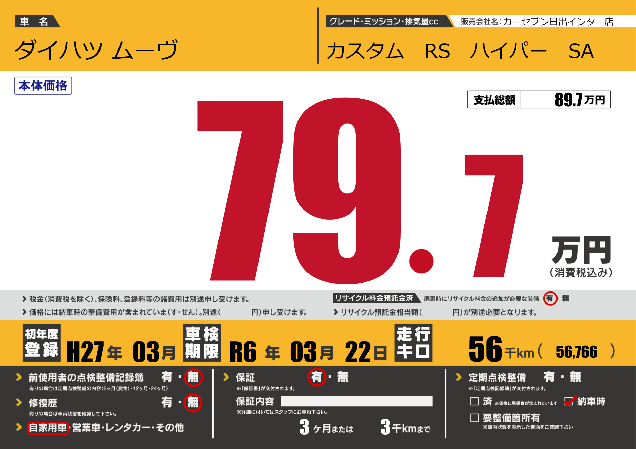 保証付き 保証内容(---) 3ヶ月または(3)千kmまで |
