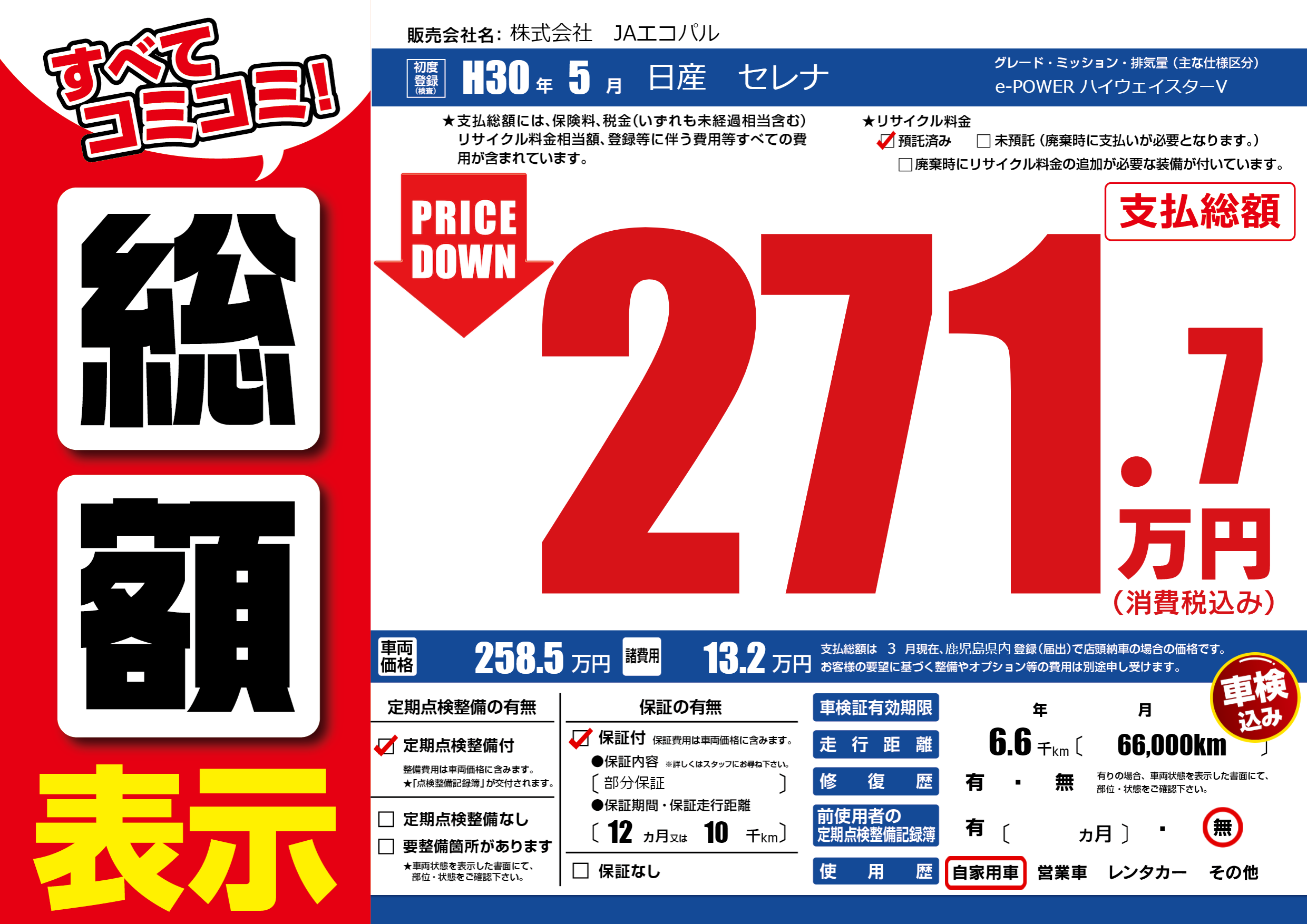 | 定期点検整備 | 定期点検整備あり | ||
