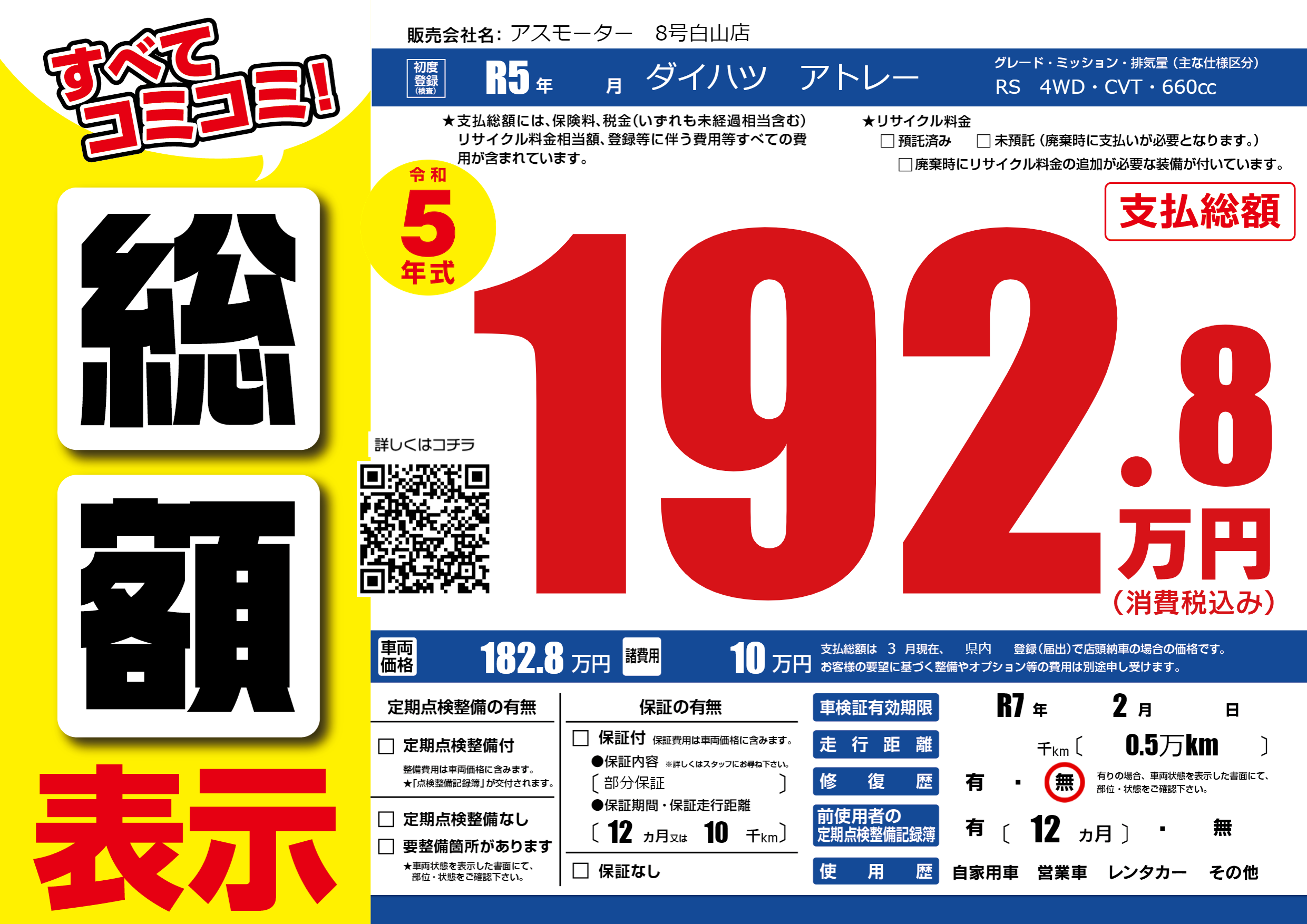 | 走行キロ | - | 初年度登録 | R5年---月 |