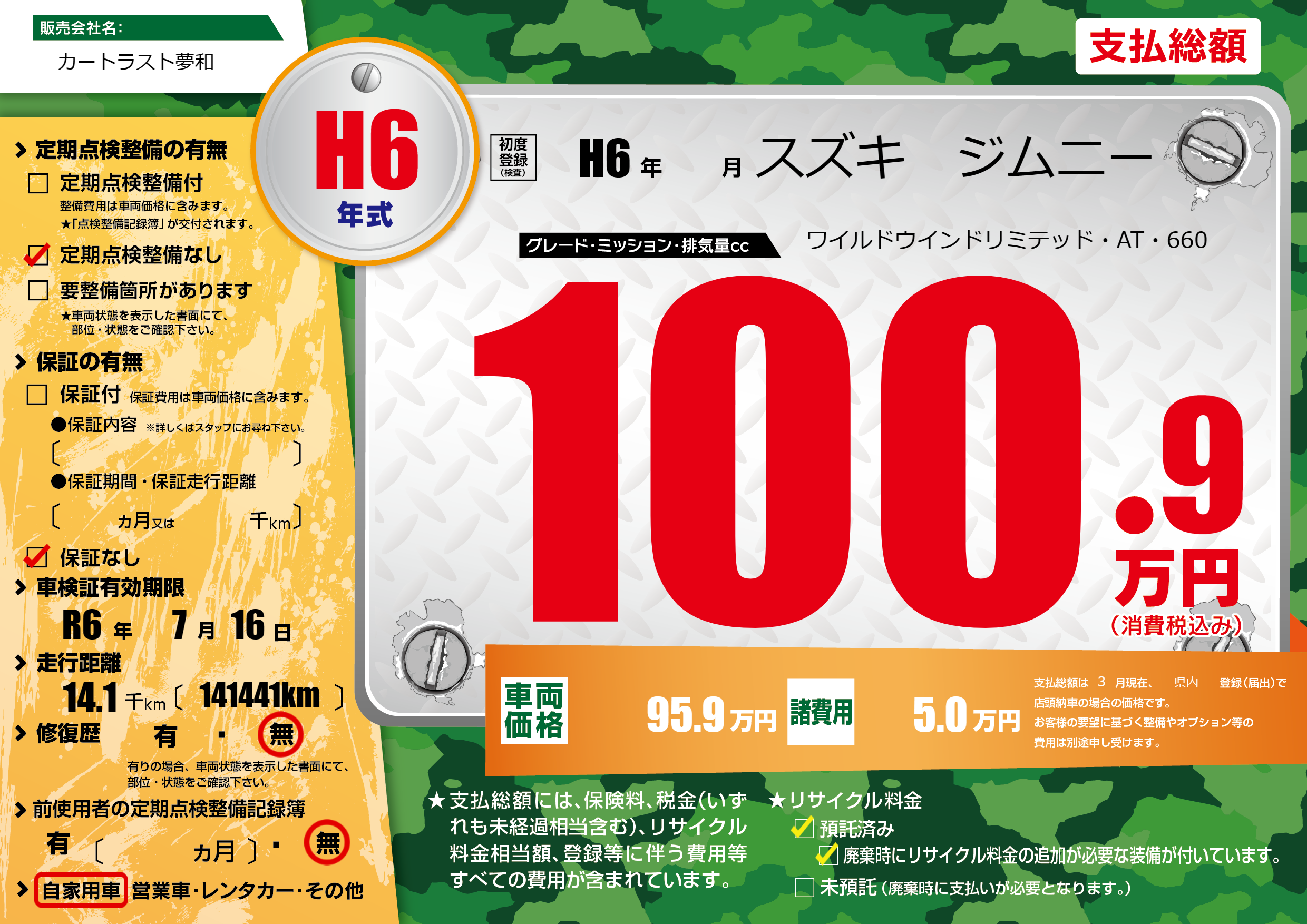 | 車検制限 | R6年 7月 16日 | ||