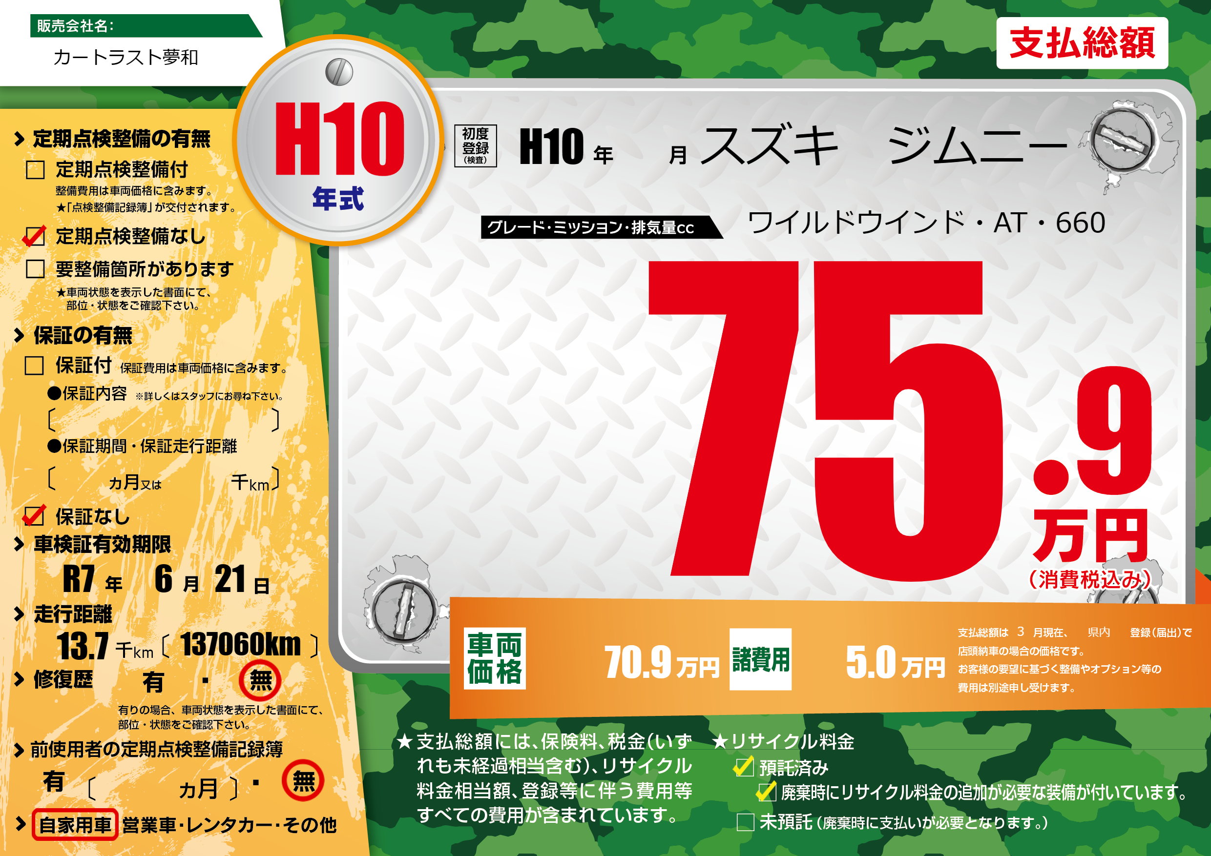 | 車検制限 | R7年 6月 21日 | ||