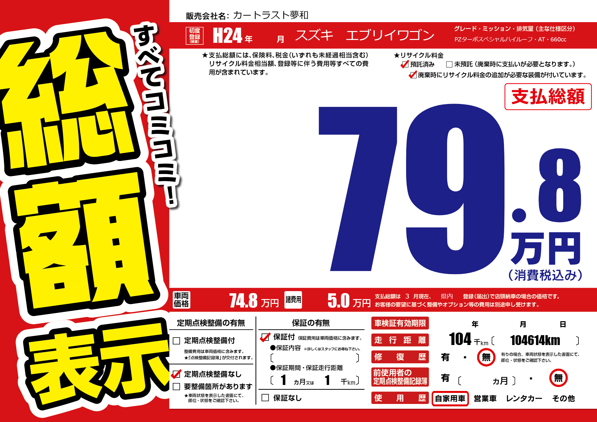 | 定期点検整備 | 定期点検整備なし | ||