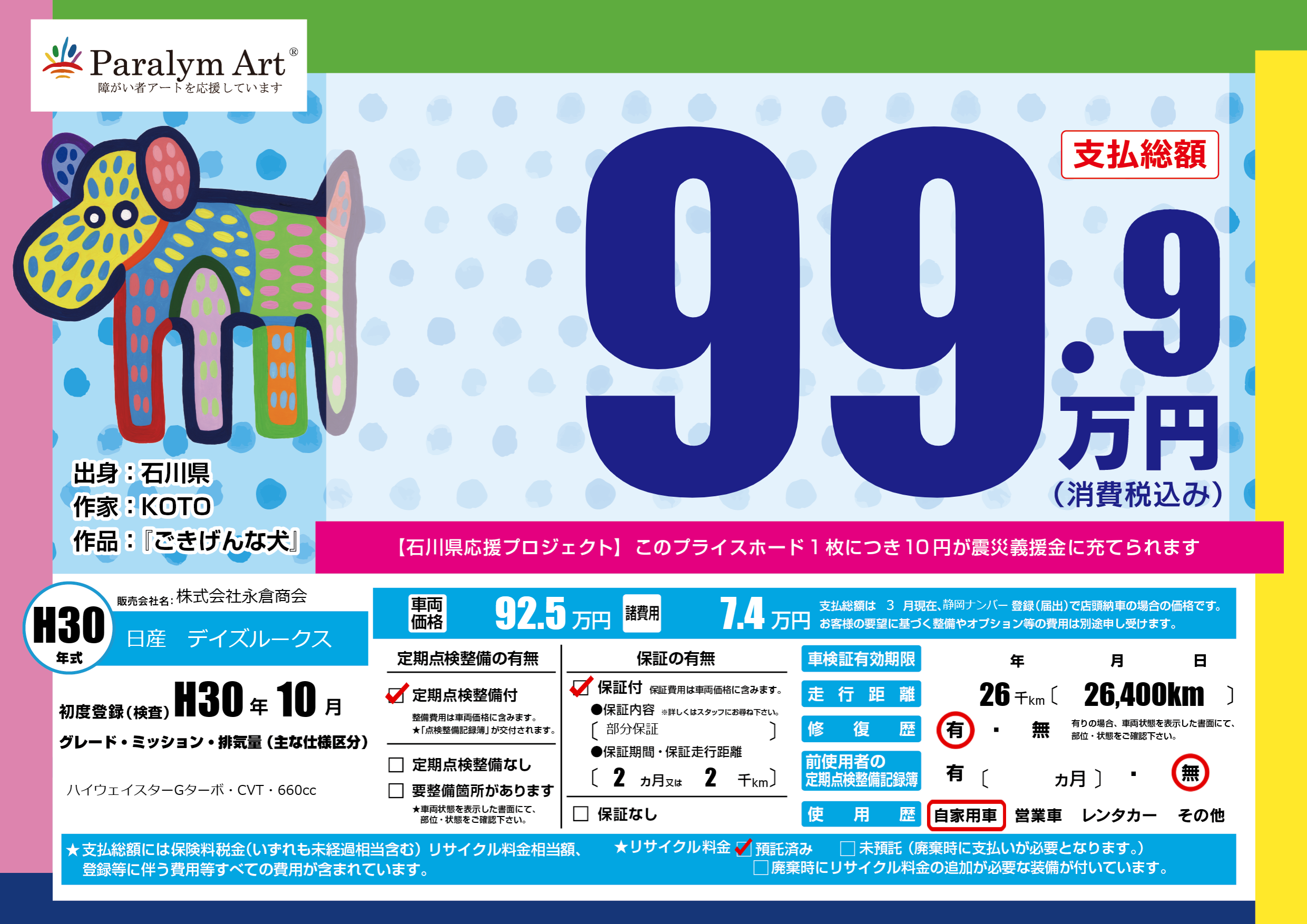 | 車名 | 日産 デイズルークス | グレード ミッション 排気量 |
