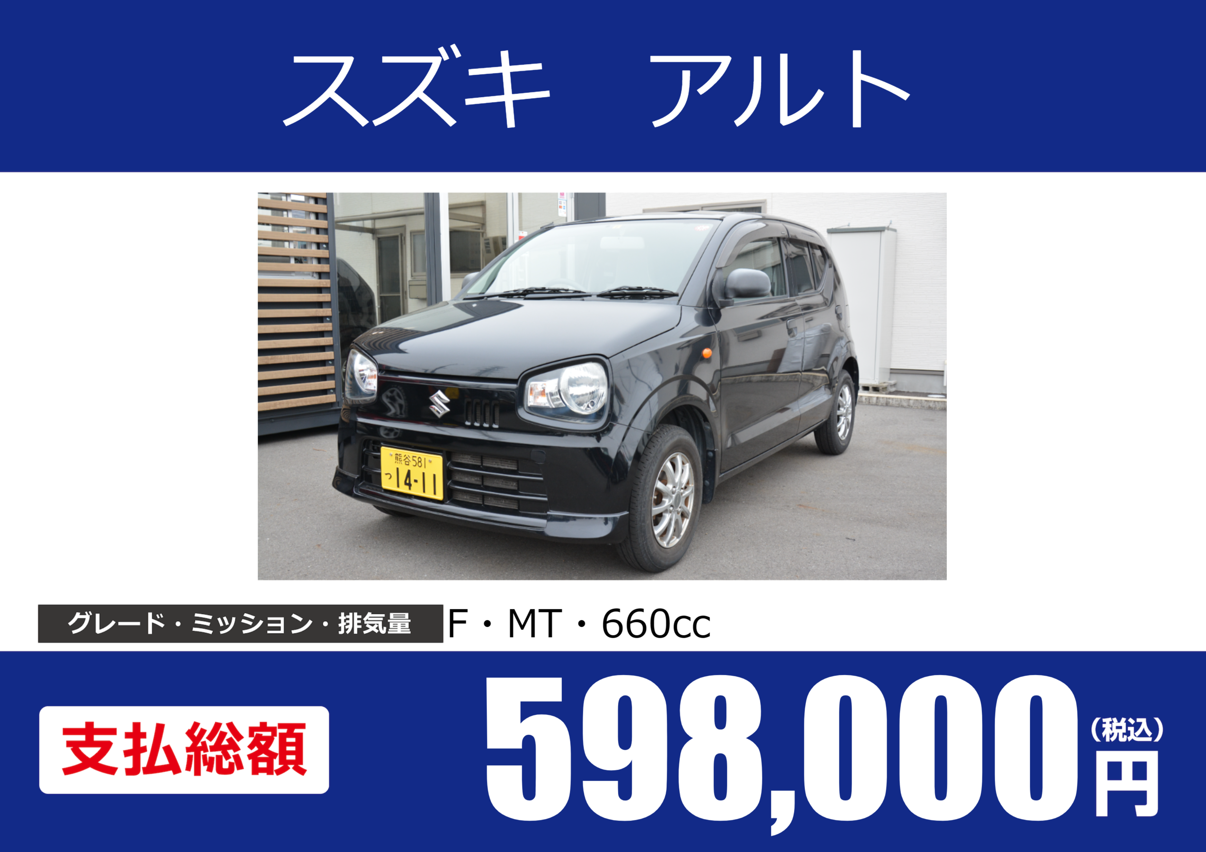 | 車名 | スズキ アルト | グレード ミッション 排気量 |