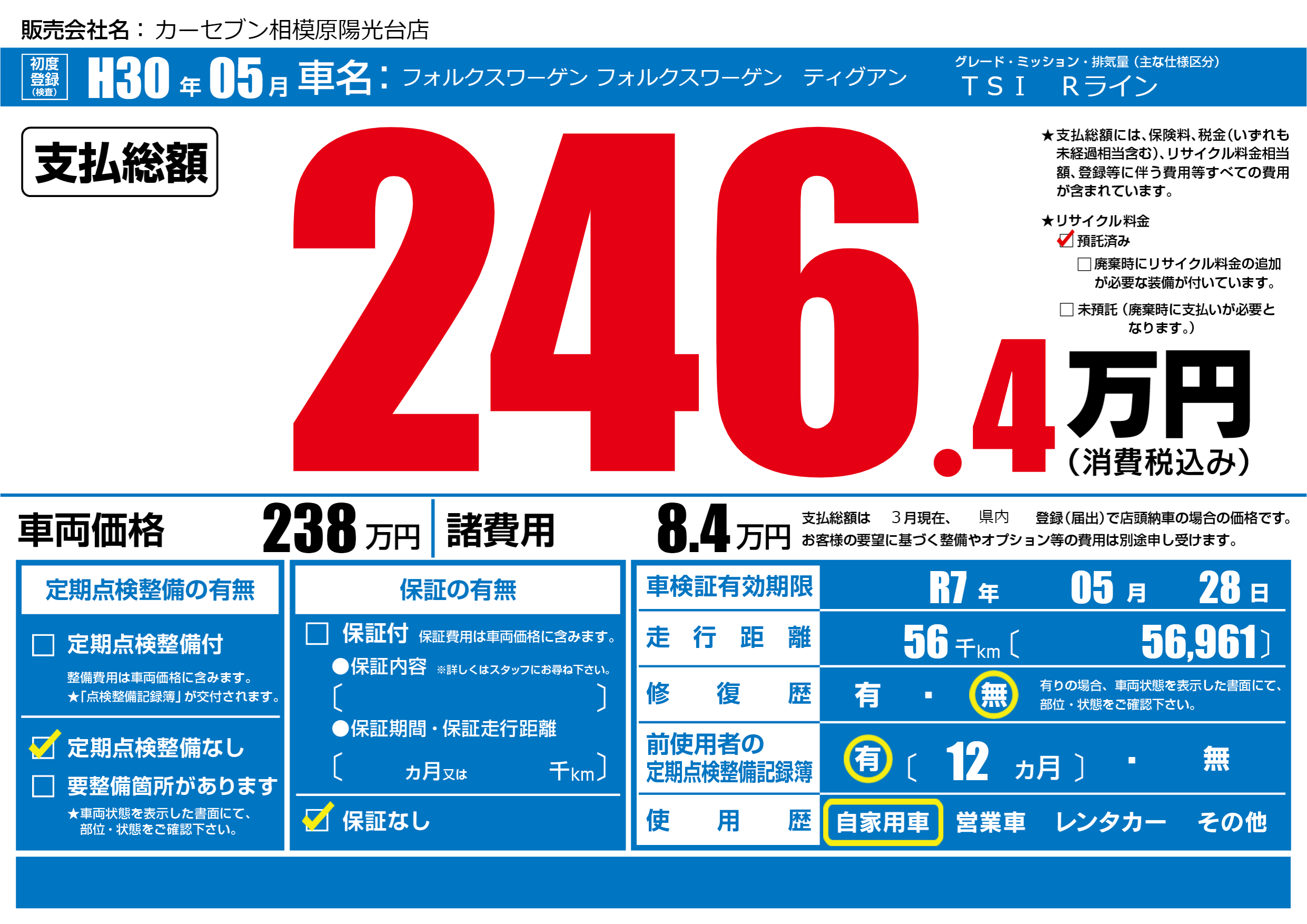 | 車検制限 | R7年 05月 28日 | ||