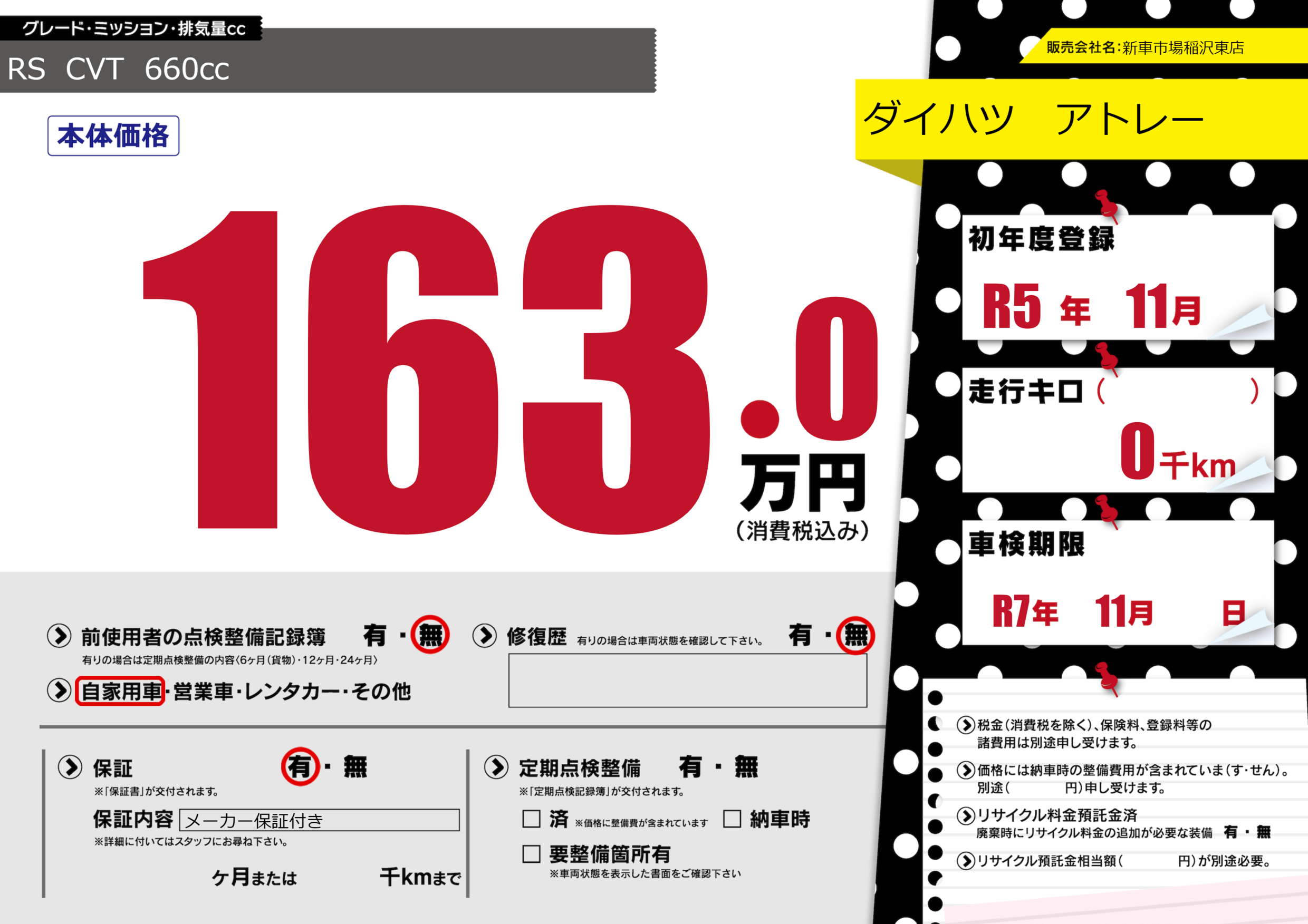 初年度登録 R5年11月