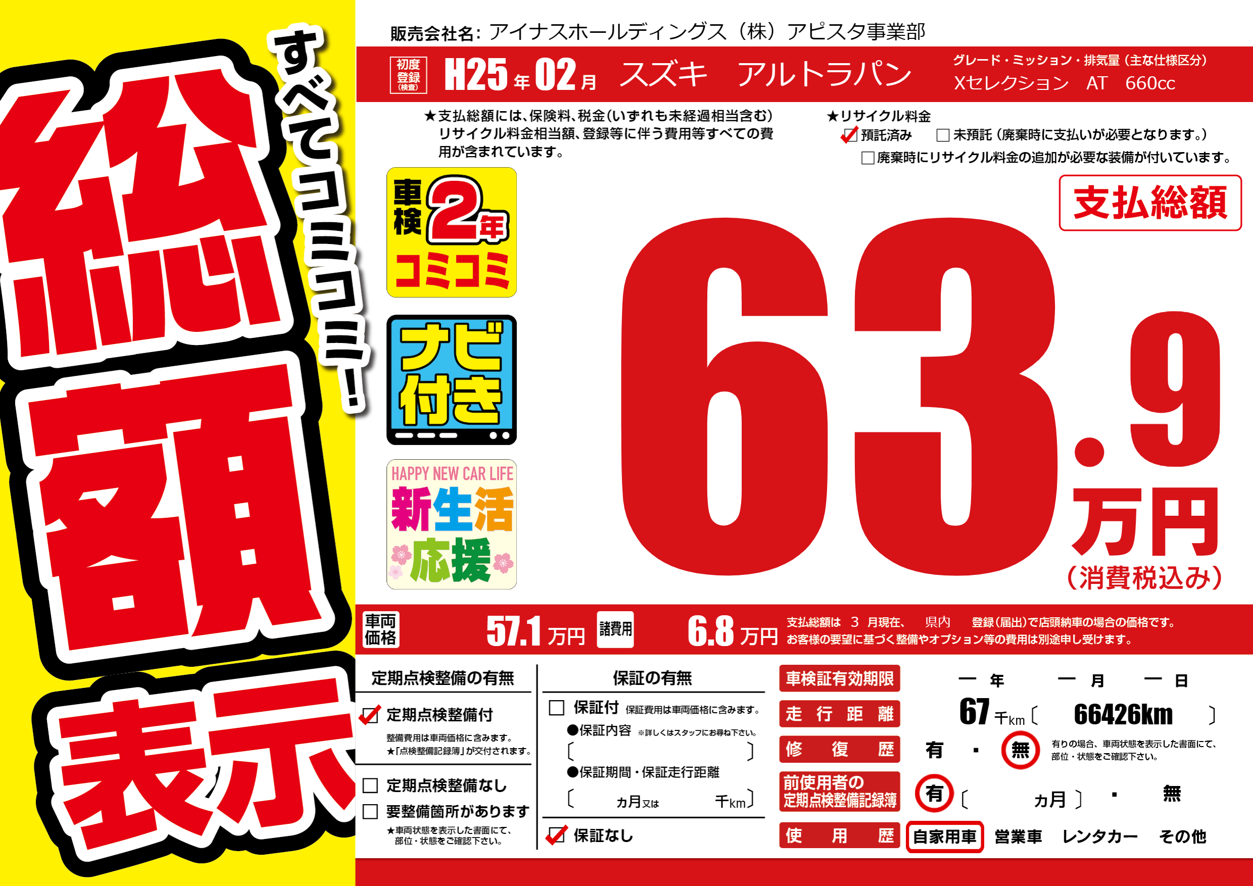 アイナスホールディングス(株)アピスタ事業部の展示車をすべて見る